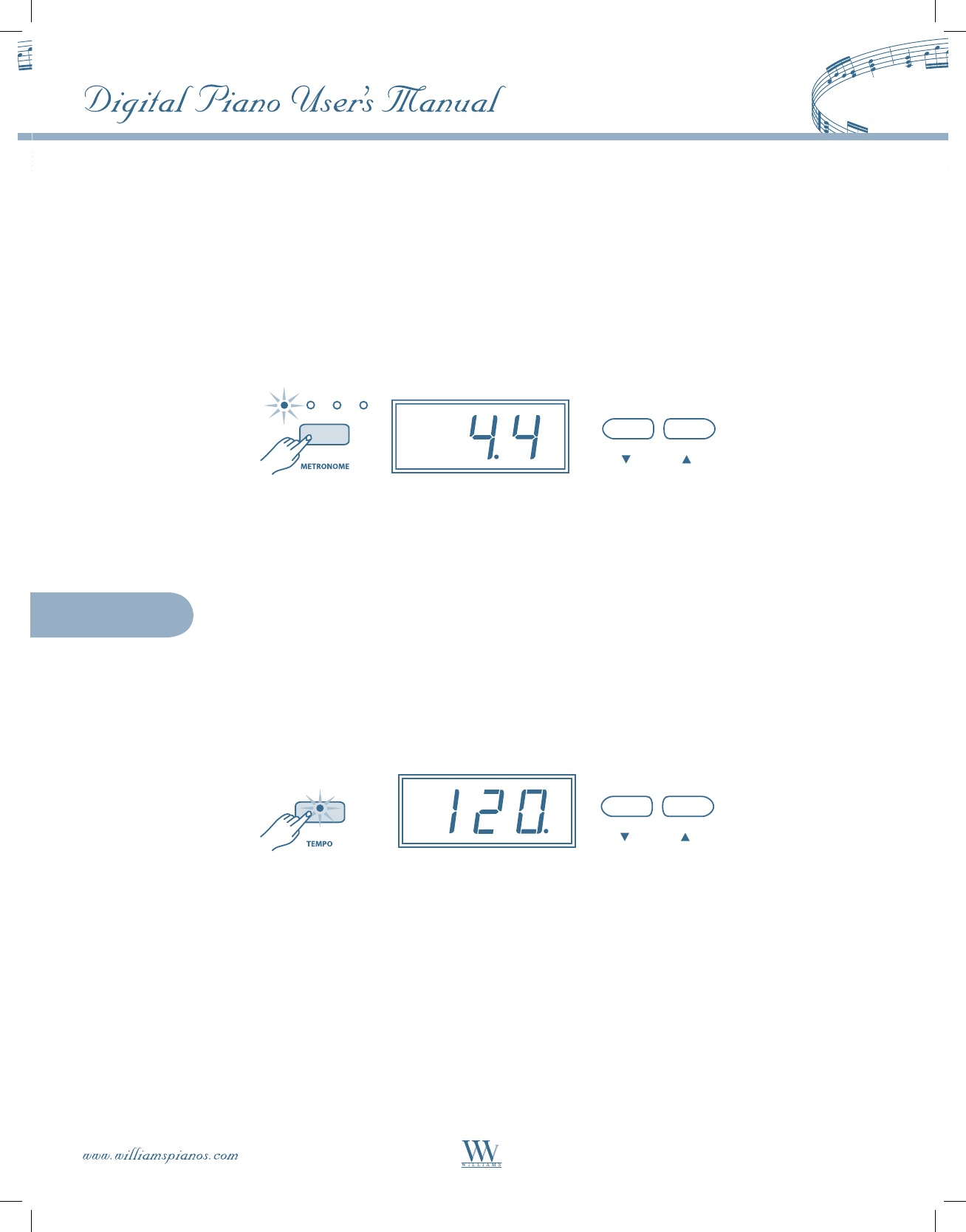 • Metronome feature with variable tempo to facilitate practice