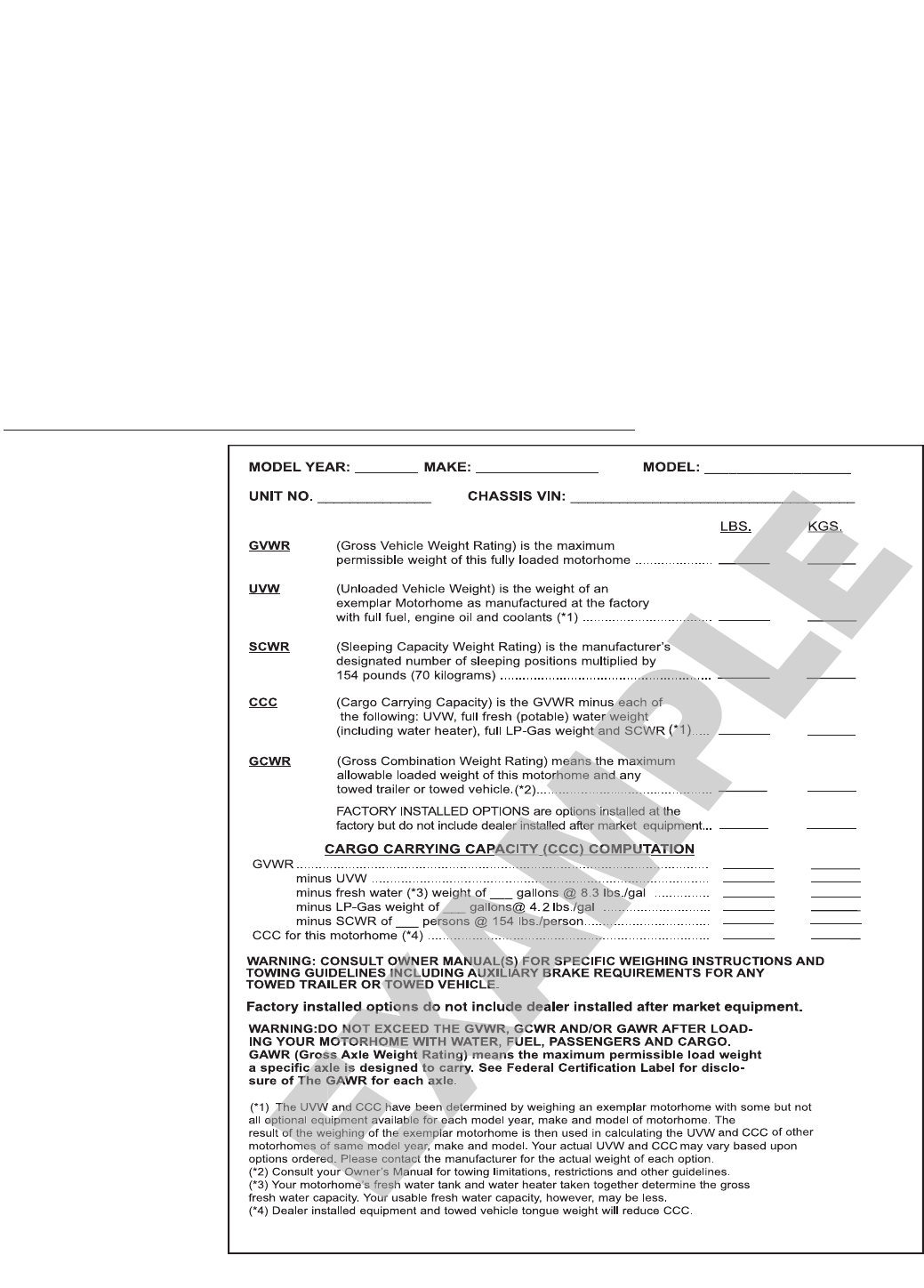 TO THOSE PORTIONS OF THE MOTORHOME COVERED BY THIS