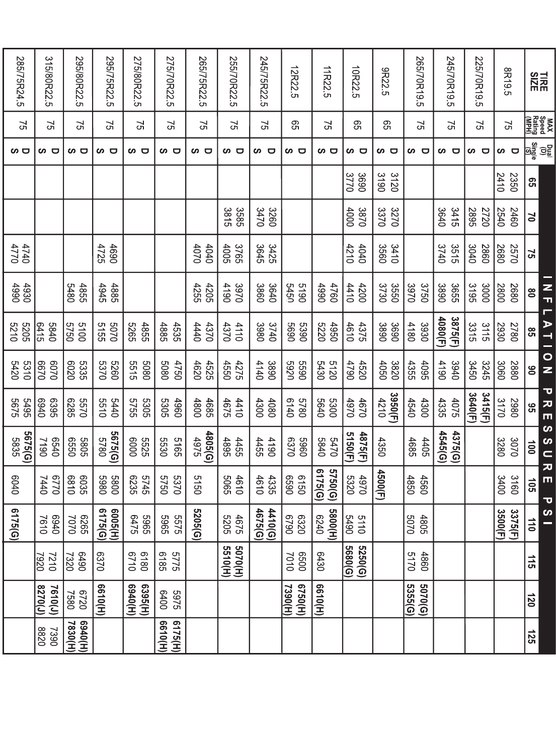 Tire Chart . . . . . . . . . . . . . . . . . . . . . . . . . . . . 52