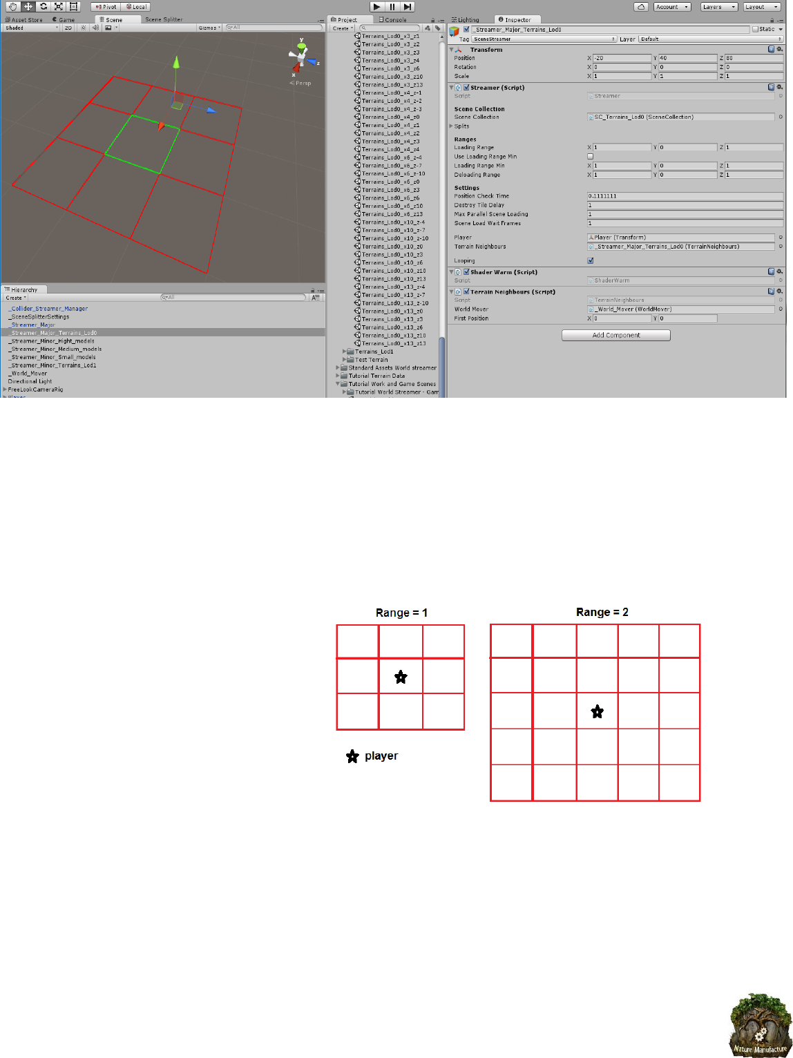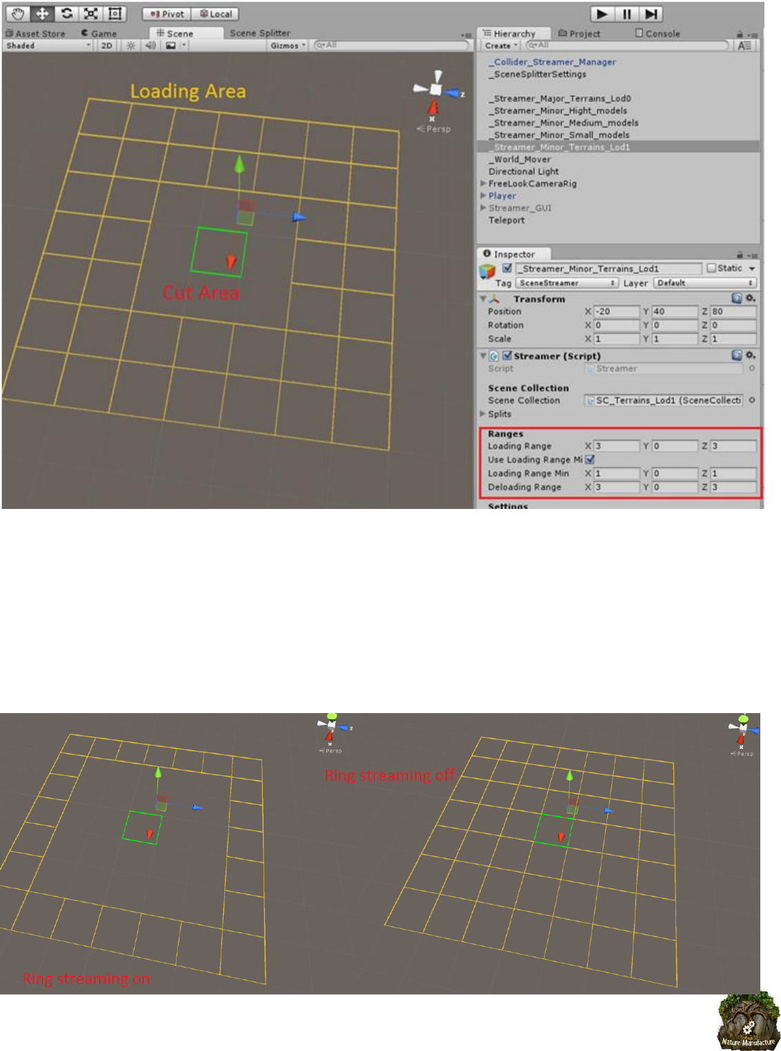 • With ring streaming you could replace heavy unity terrains by low poly mesh at far distance. This could save