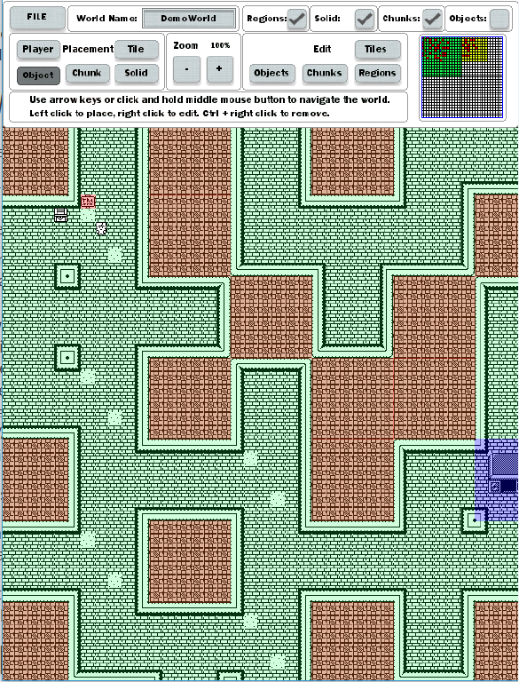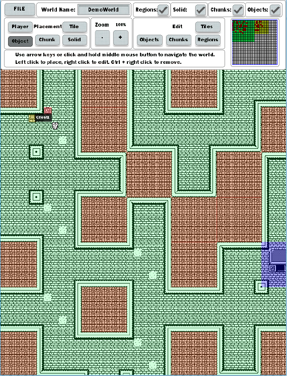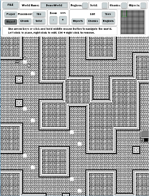 o Objects: Create and edit the objects that can be placed.