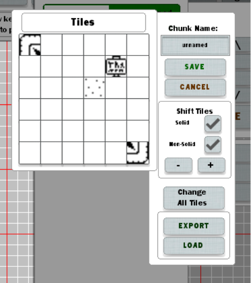 o Tiles: Load a tileset, or change which tiles are considered solid or empty