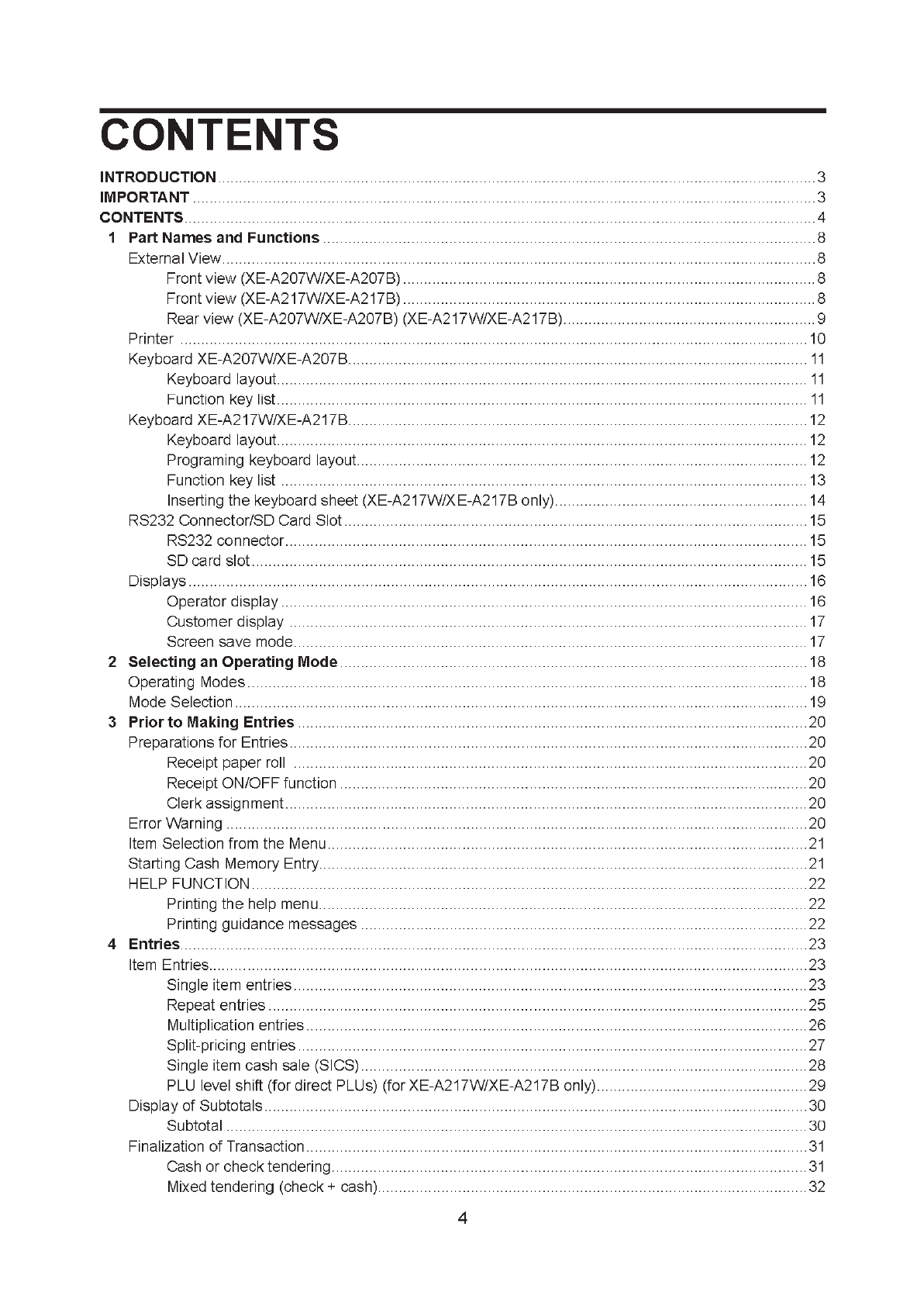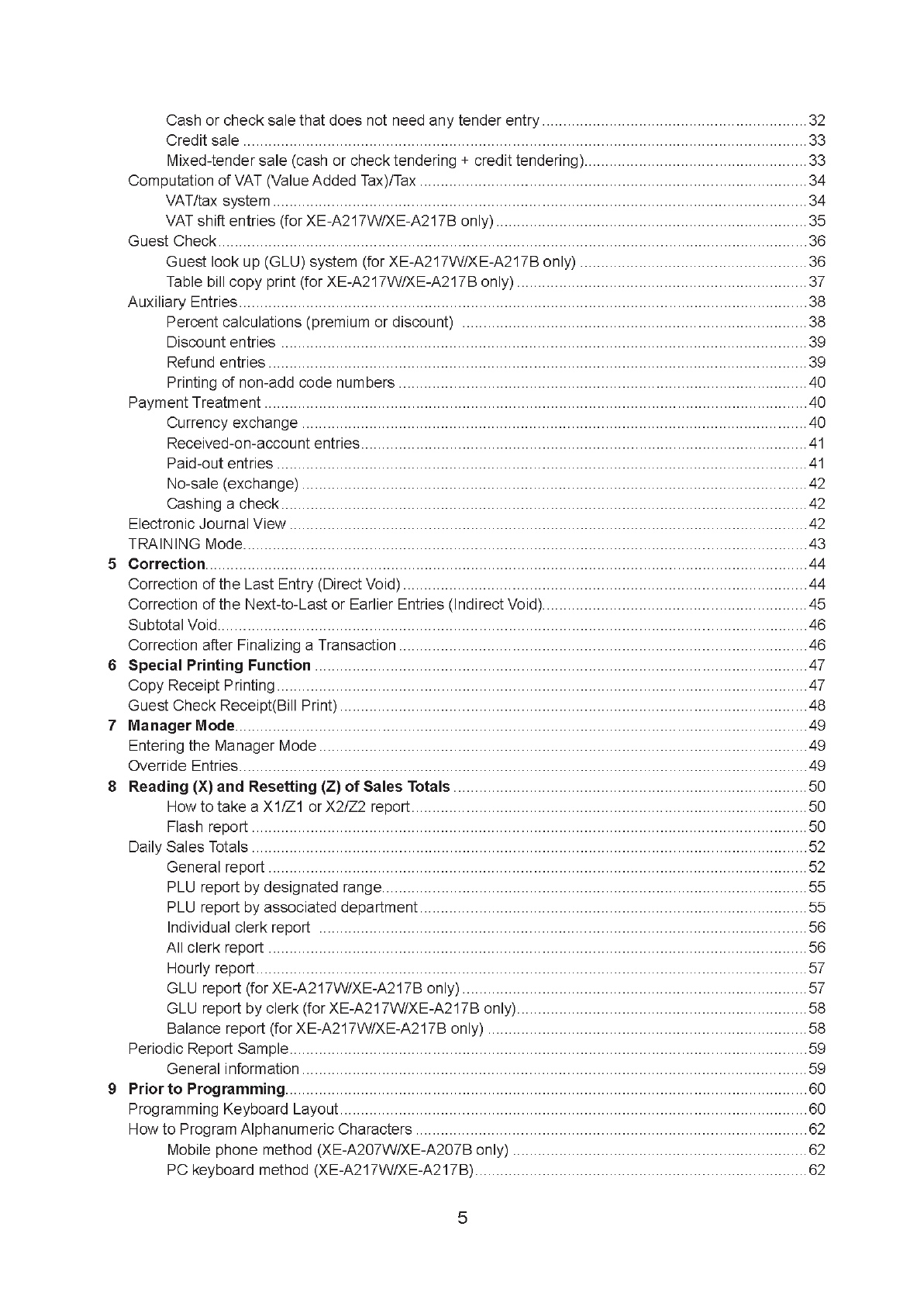 Sharp XE A207W And A217W A207B A217B Operation Programming Manual Cash Register Programming.TOC