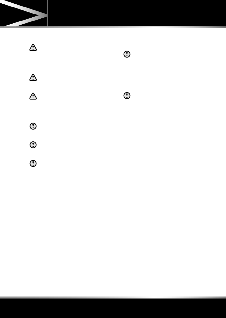 Safety warnings indicate either a procedure which must be followed precisely, or