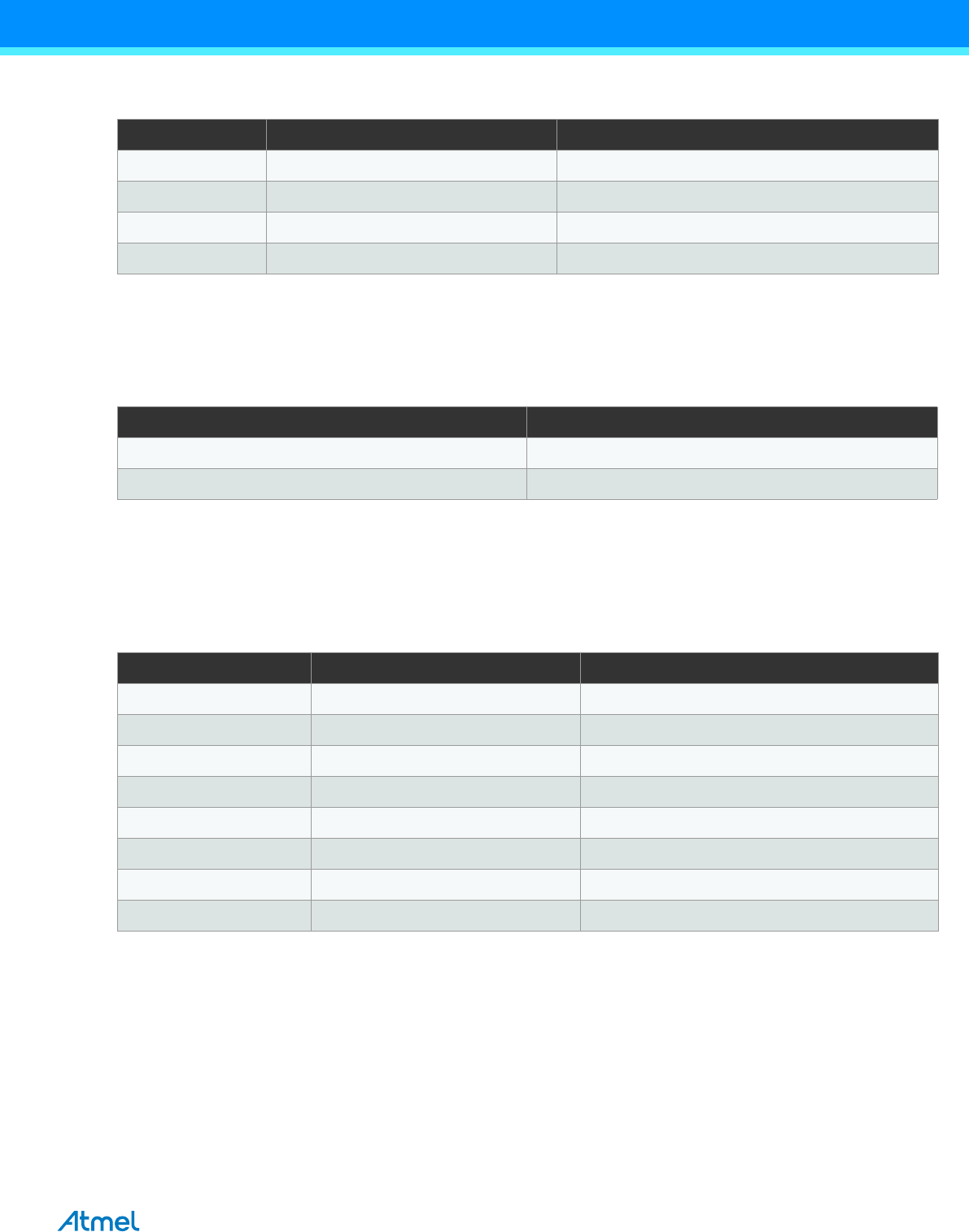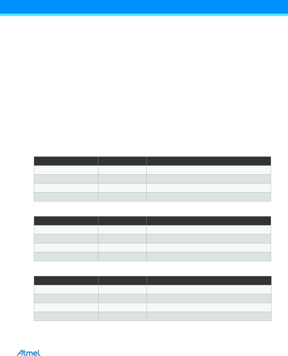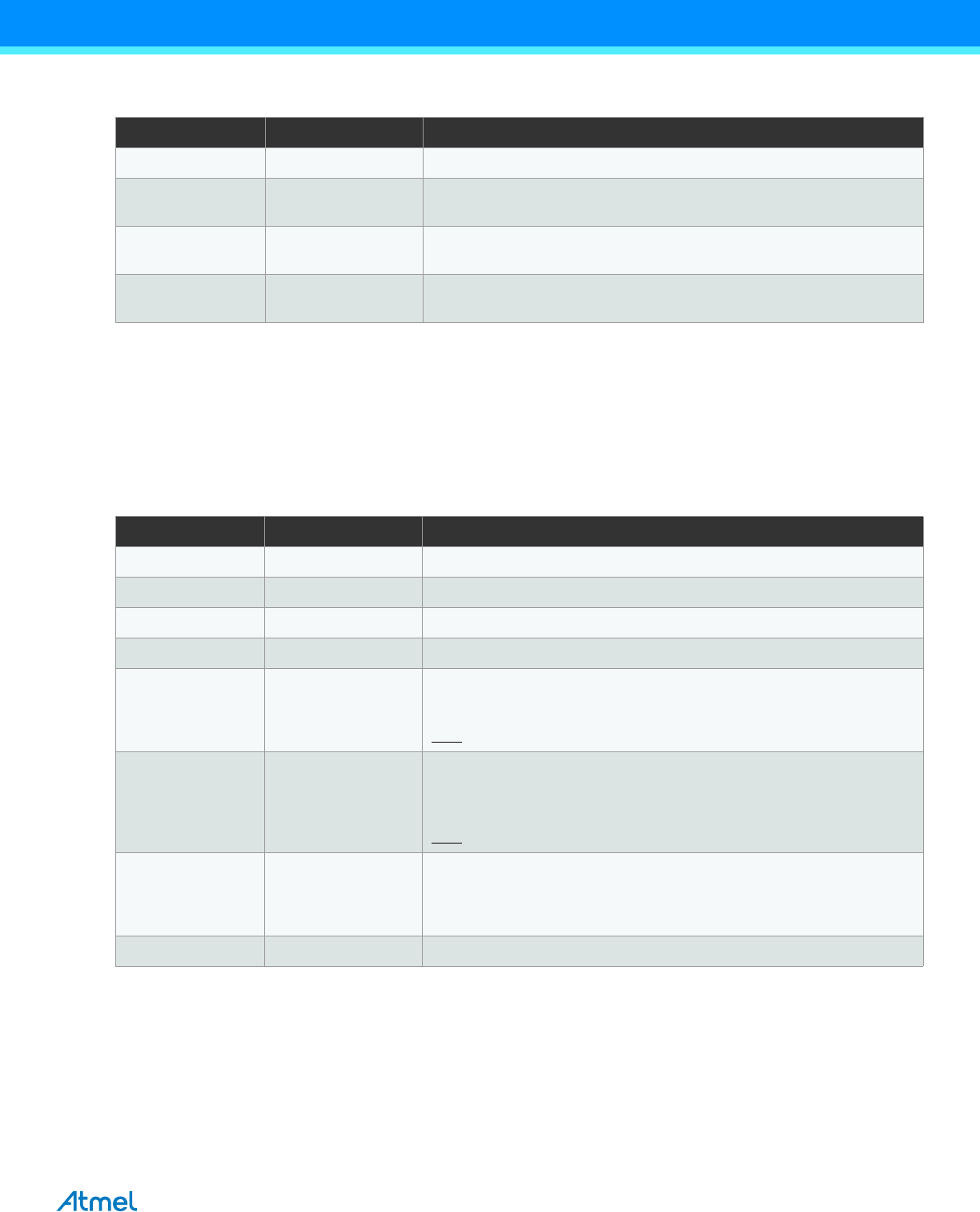 DISCLAIMER: The information in this document is provided in connection with Atmel products. No license, express or implied, by estoppel or otherwise, to any intellectual property right