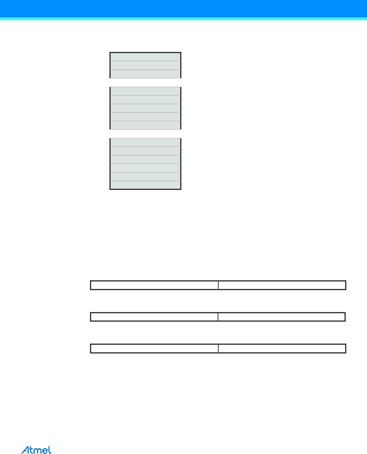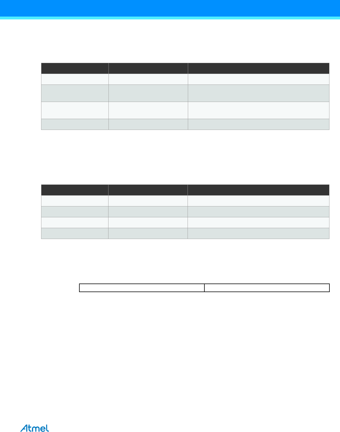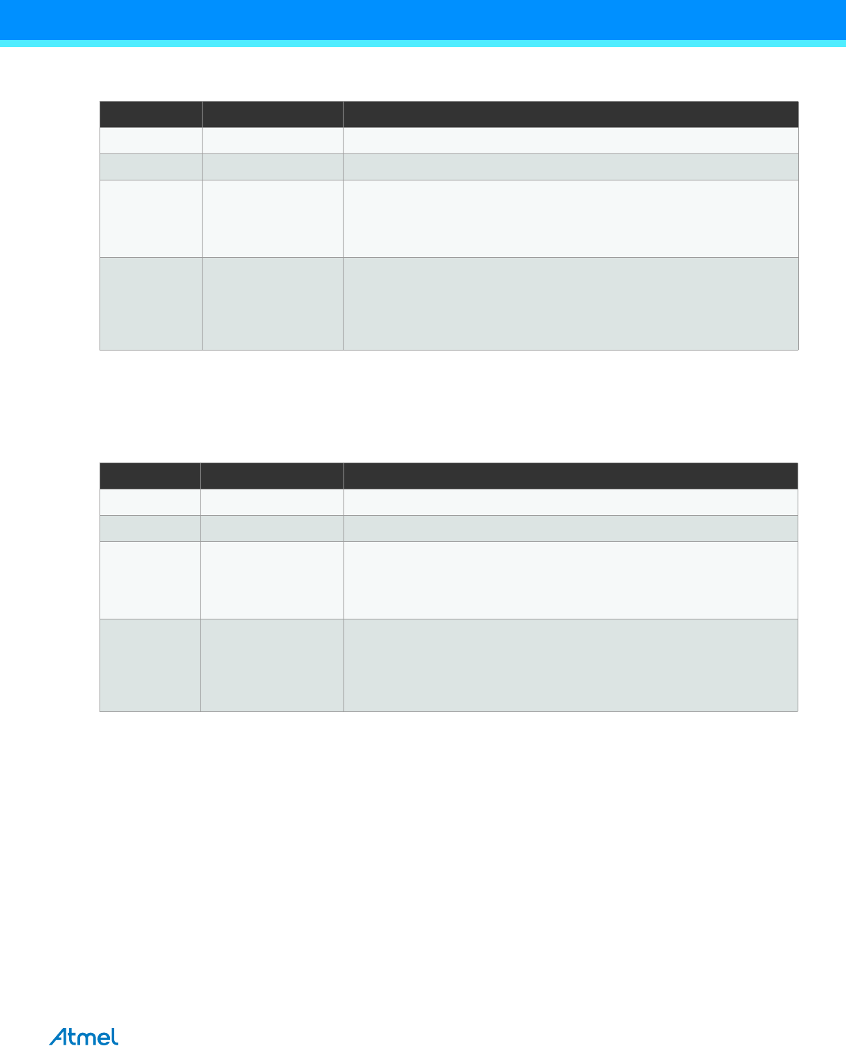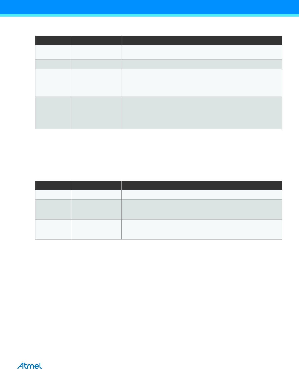 DISCLAIMER: The information in this document is provided in connection with Atmel products. No license, express or implied, by estoppel or otherwise, to any intellectual property right