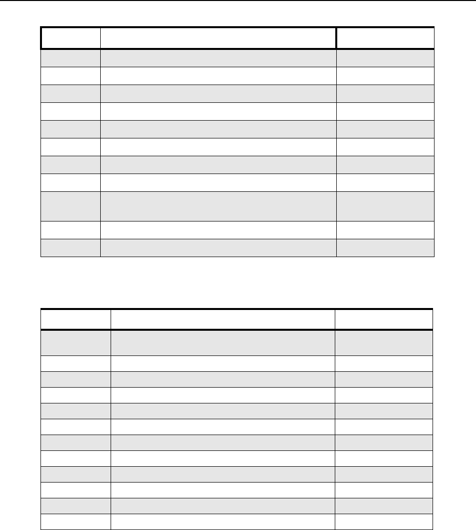 - List of Tables