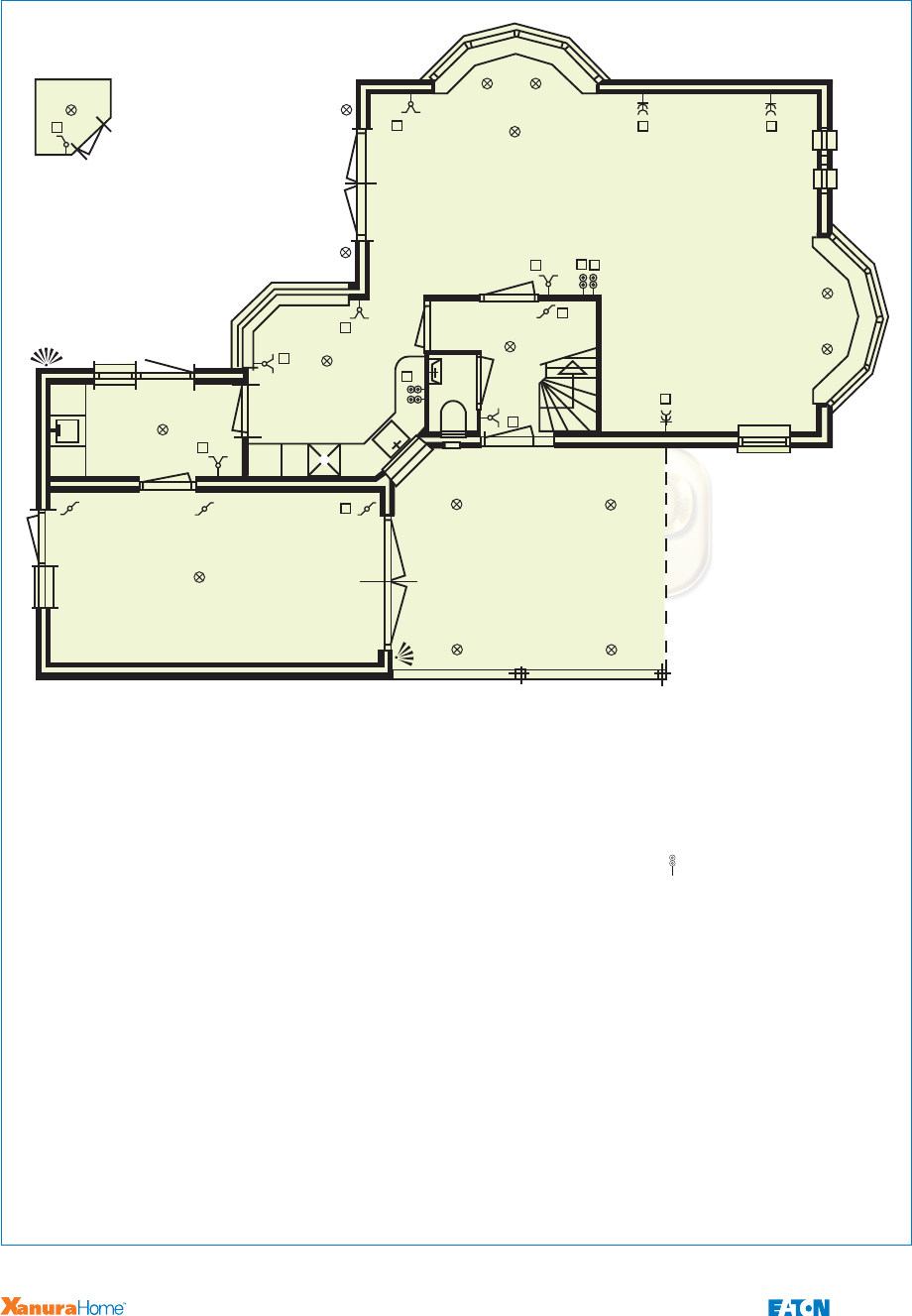 software, the desired lights in the living room (c, d & f) can be switched on when dusk falls.