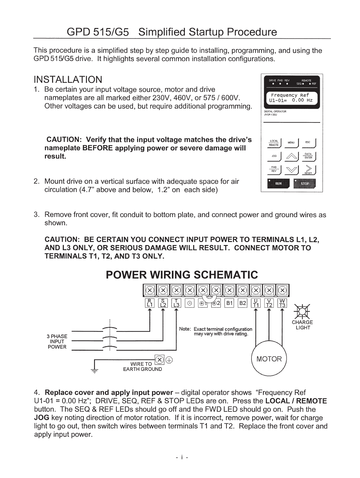 - GPD 515/G5 SIMPLIFIED START-UP PROCEDURE