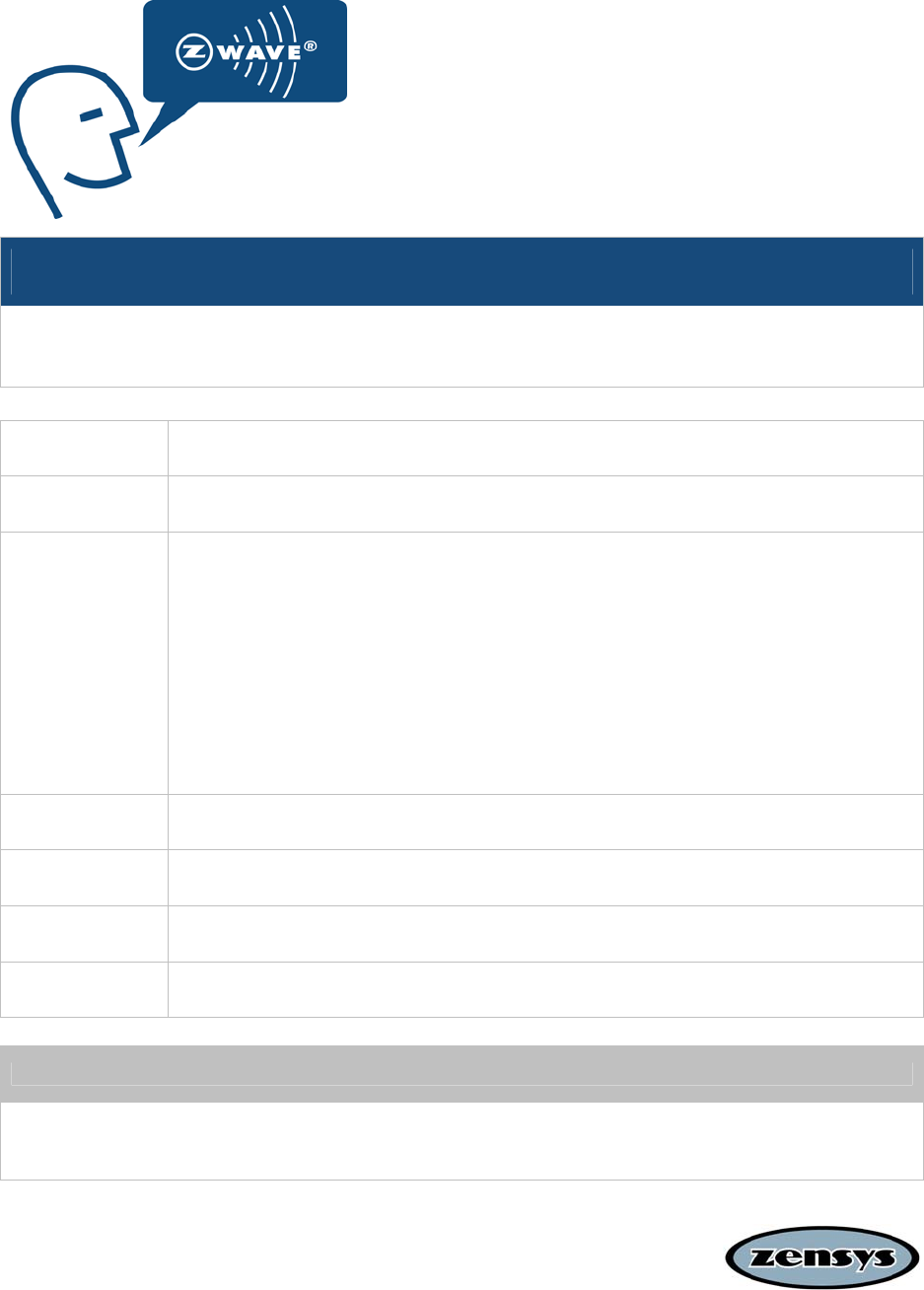 This document is the property of Zensys A/S. The data contained herein, in whole or in