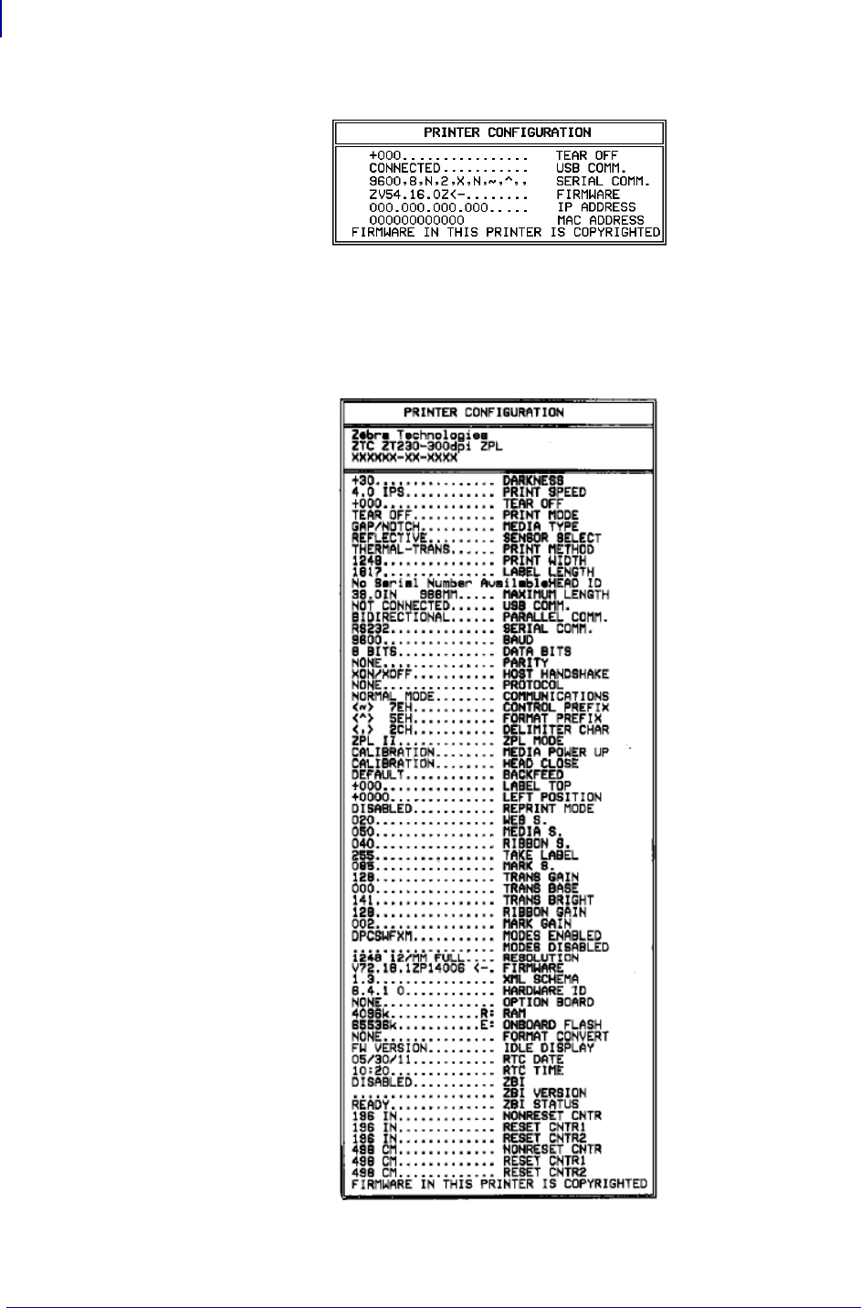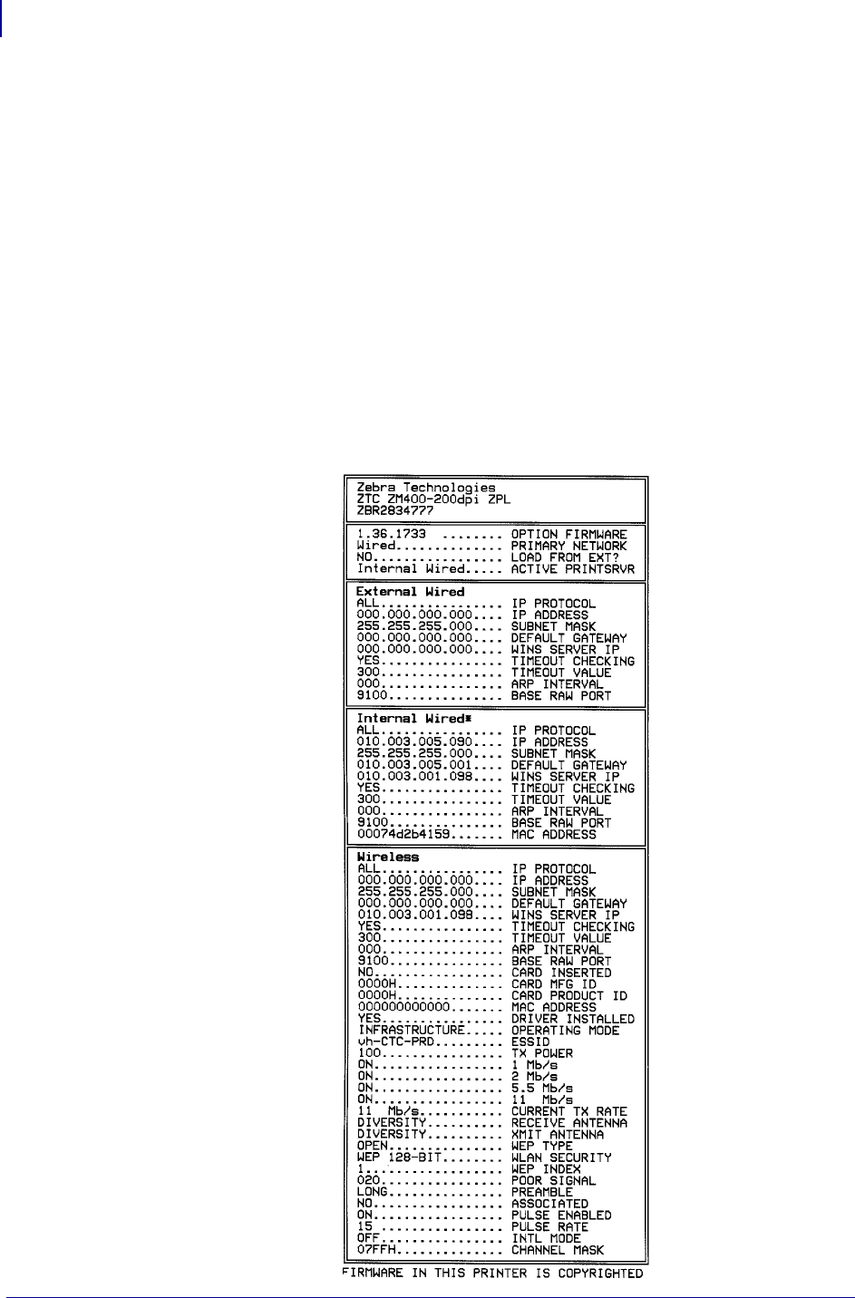 - Printing a Network Configuration Label — Internal ZebraNet 10/100 Print Server and Wireless Print Servers
