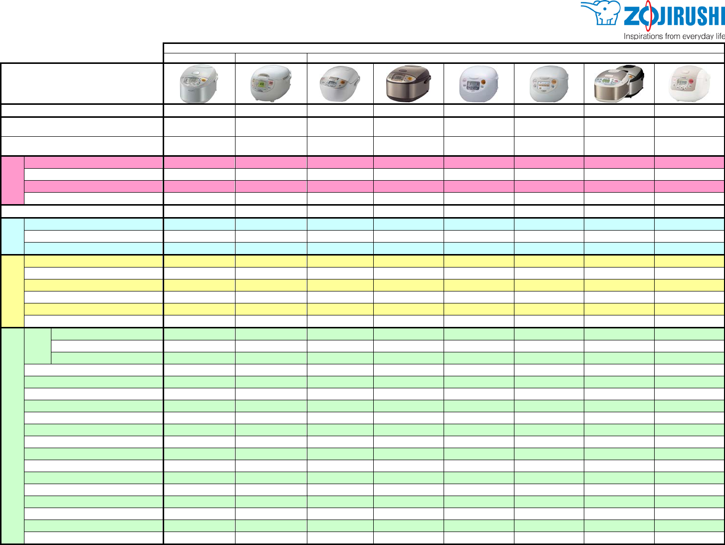 Zojirushi Rice Cooker Comparison Chart RNC10