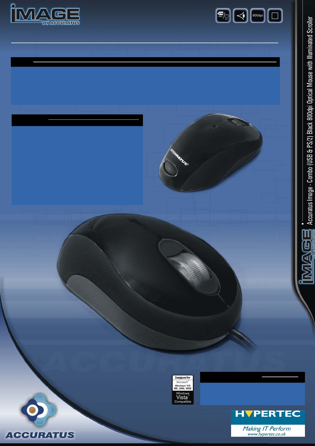 Accuratus Image - Combo (USB & PS/2) Black 800dpi Optical Mouse with Illuminated Scroller