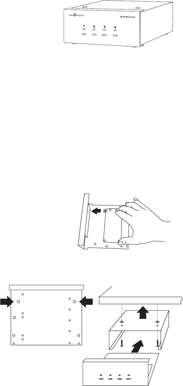 To mount the Model 90 under a shelf, pop out the hole plugs in the top cover, place plastic washers in the