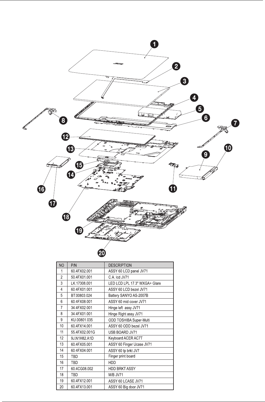 Guide. You MUST use the list provided by your regional Acer office to order FRU parts for repair and