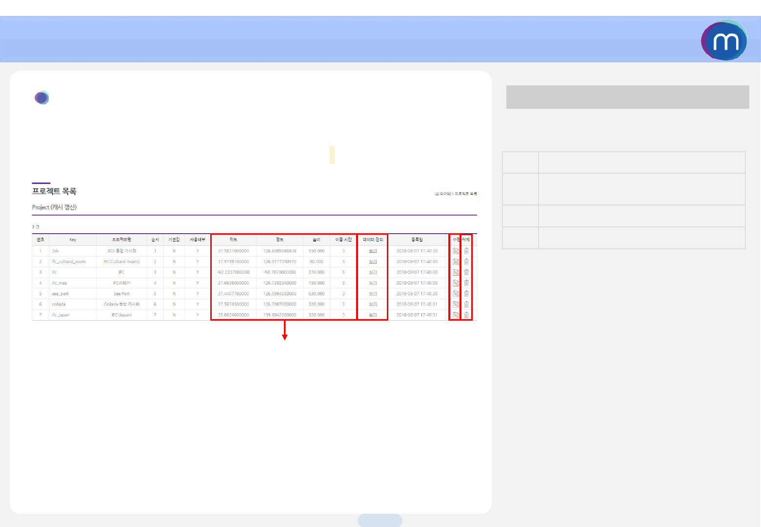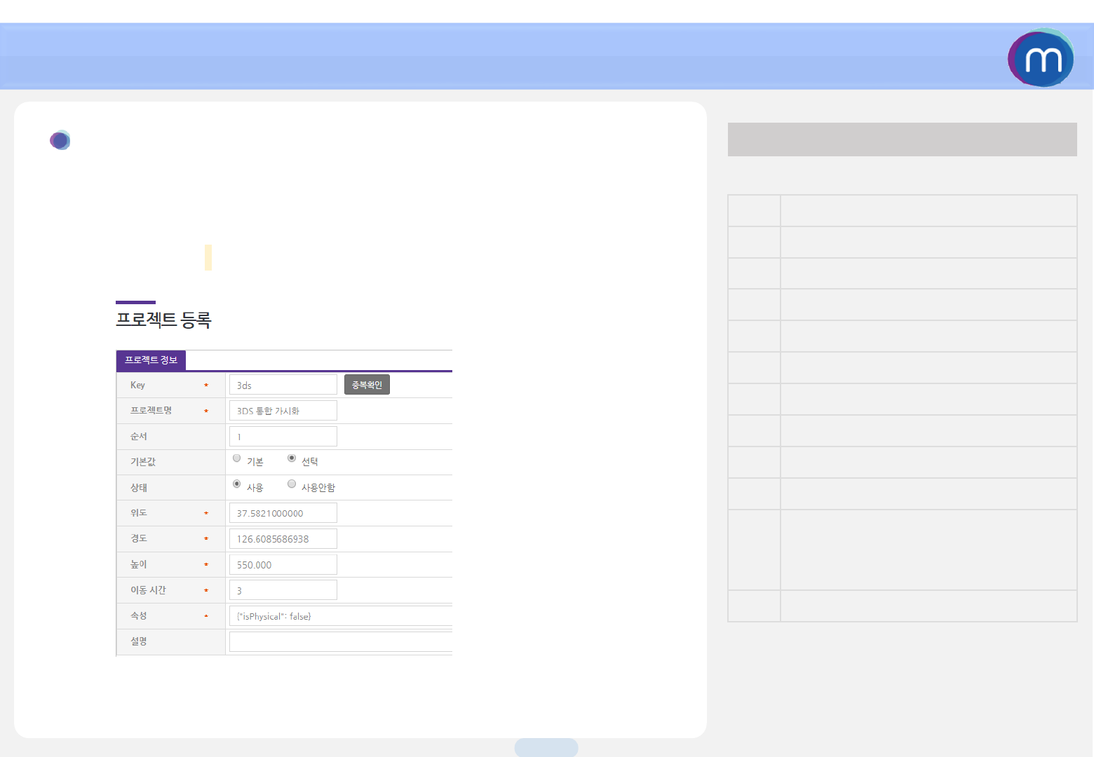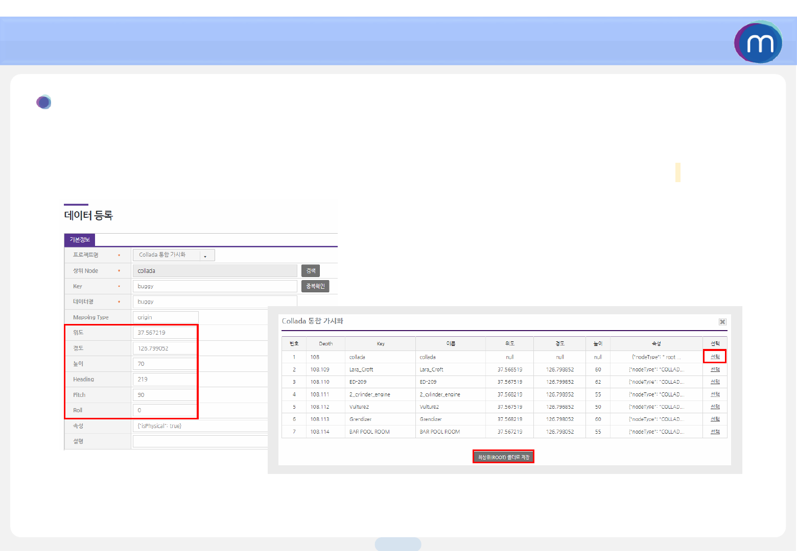 •실제 데이터를 등록할 때는 공간정보 및데이터의 key 값을 적절