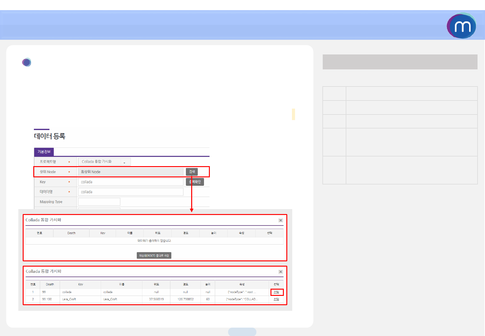 •상위 프로젝트를 지정하여 데이터를 등록 할 수 있습니다. 프로젝트 등록 후최상위 Node로데이터
