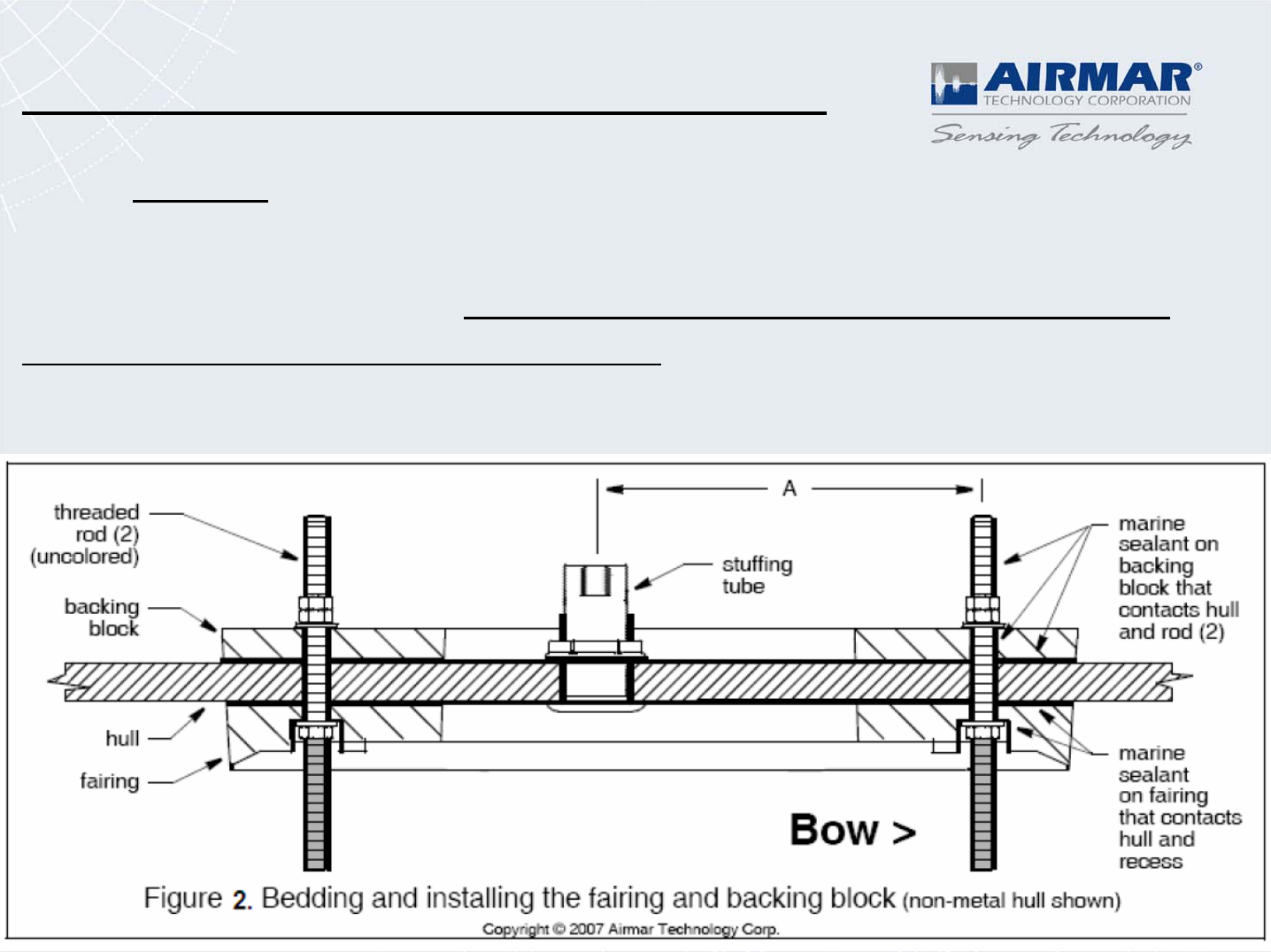 - This installation of a B164 looks good, however notice the strake 10 feet directly in front of the transducer. This causes tu