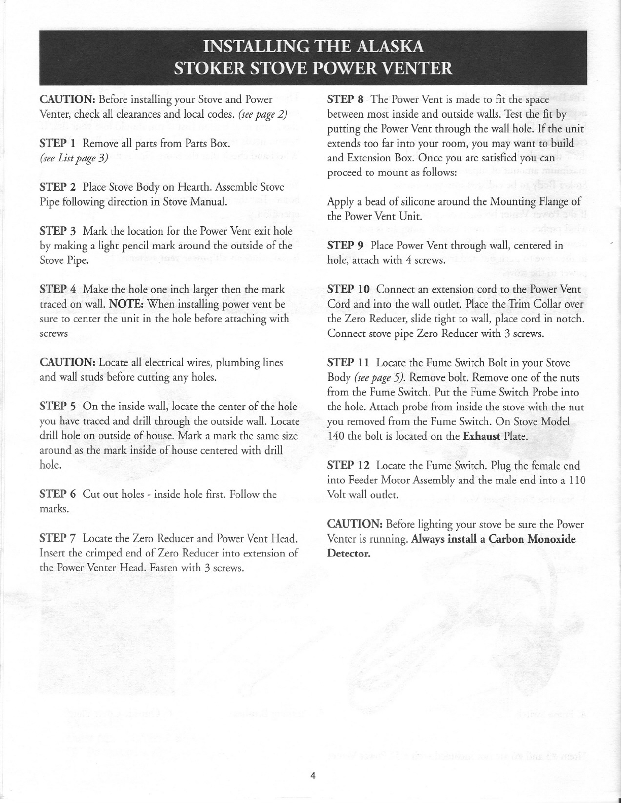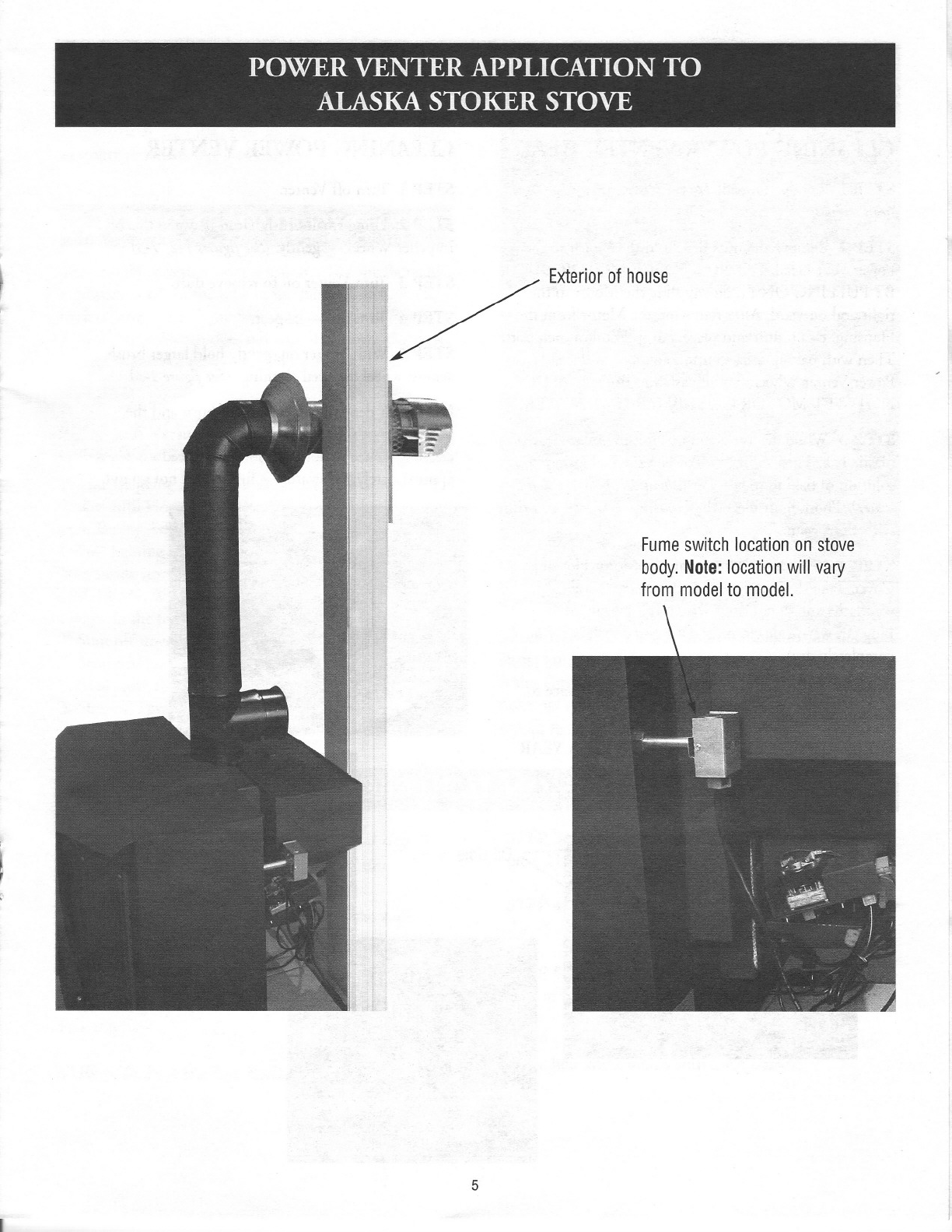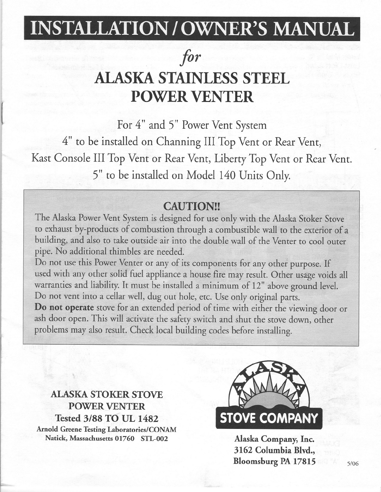 The Alaska Power Vent System is designed for use only with the Alaska Stoker Stove