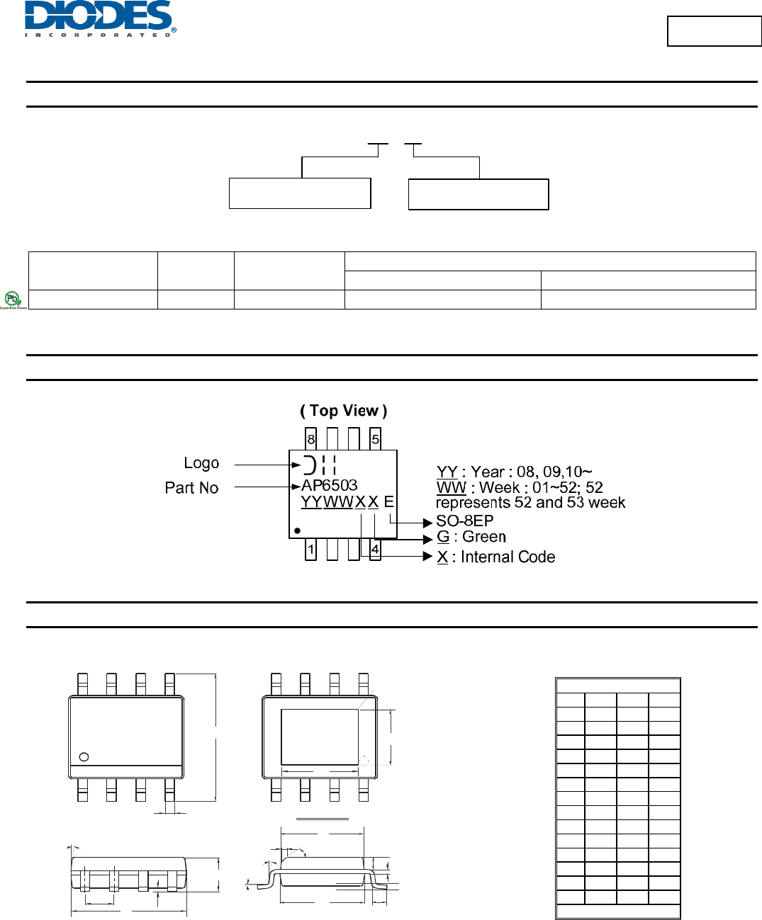 The AP6503 is available in a standard Green SO-8EP package with
