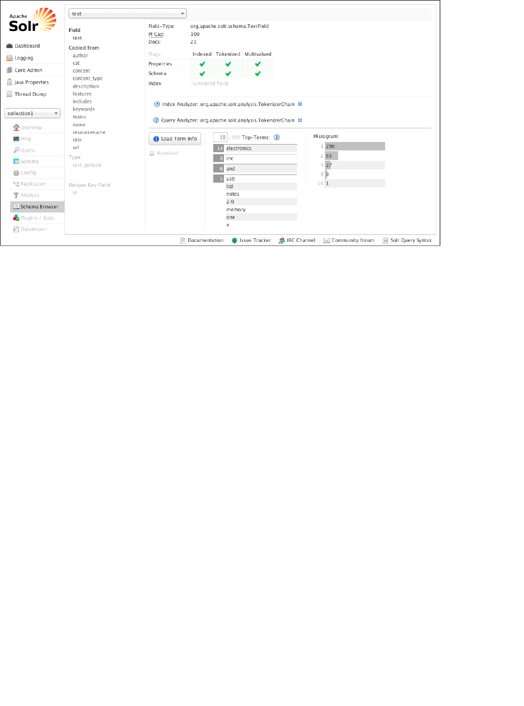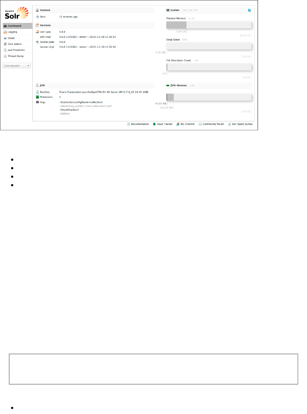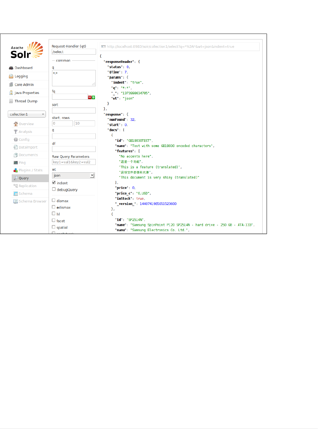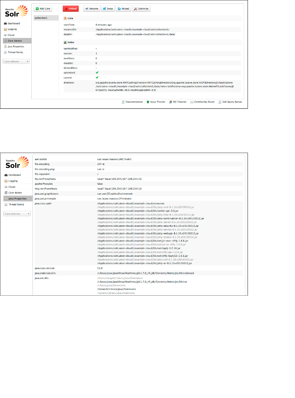 Using the Solr Administration User Interface: This