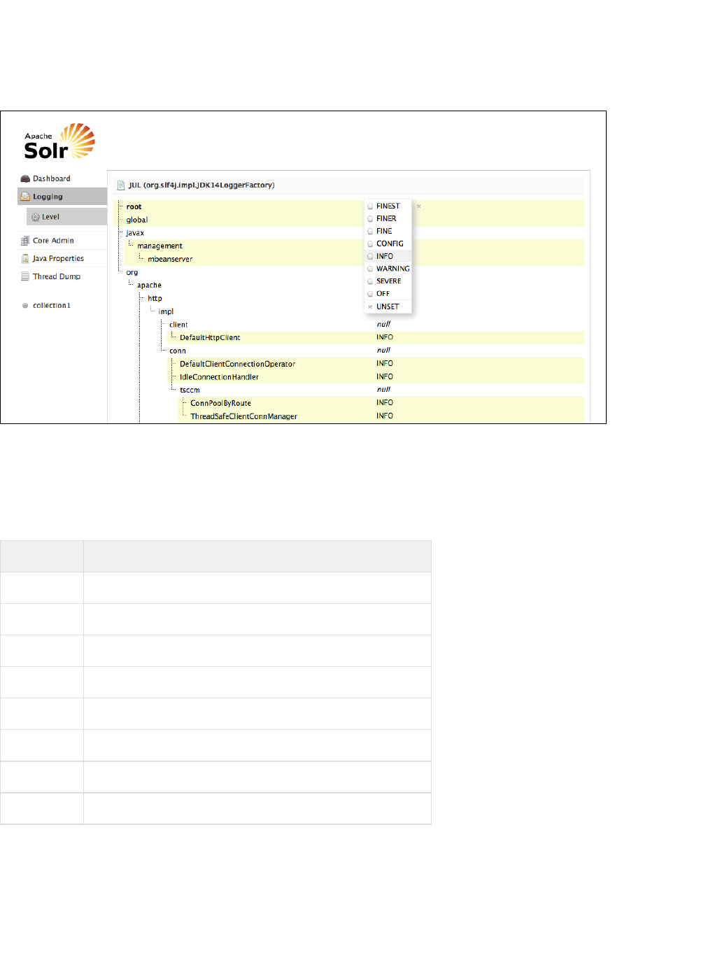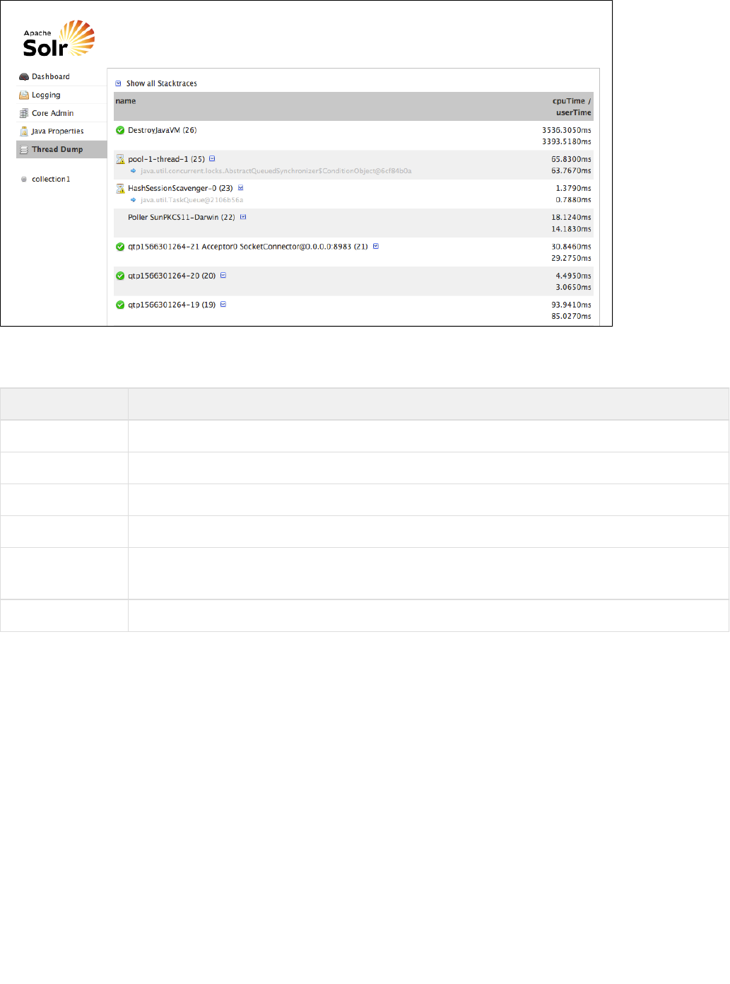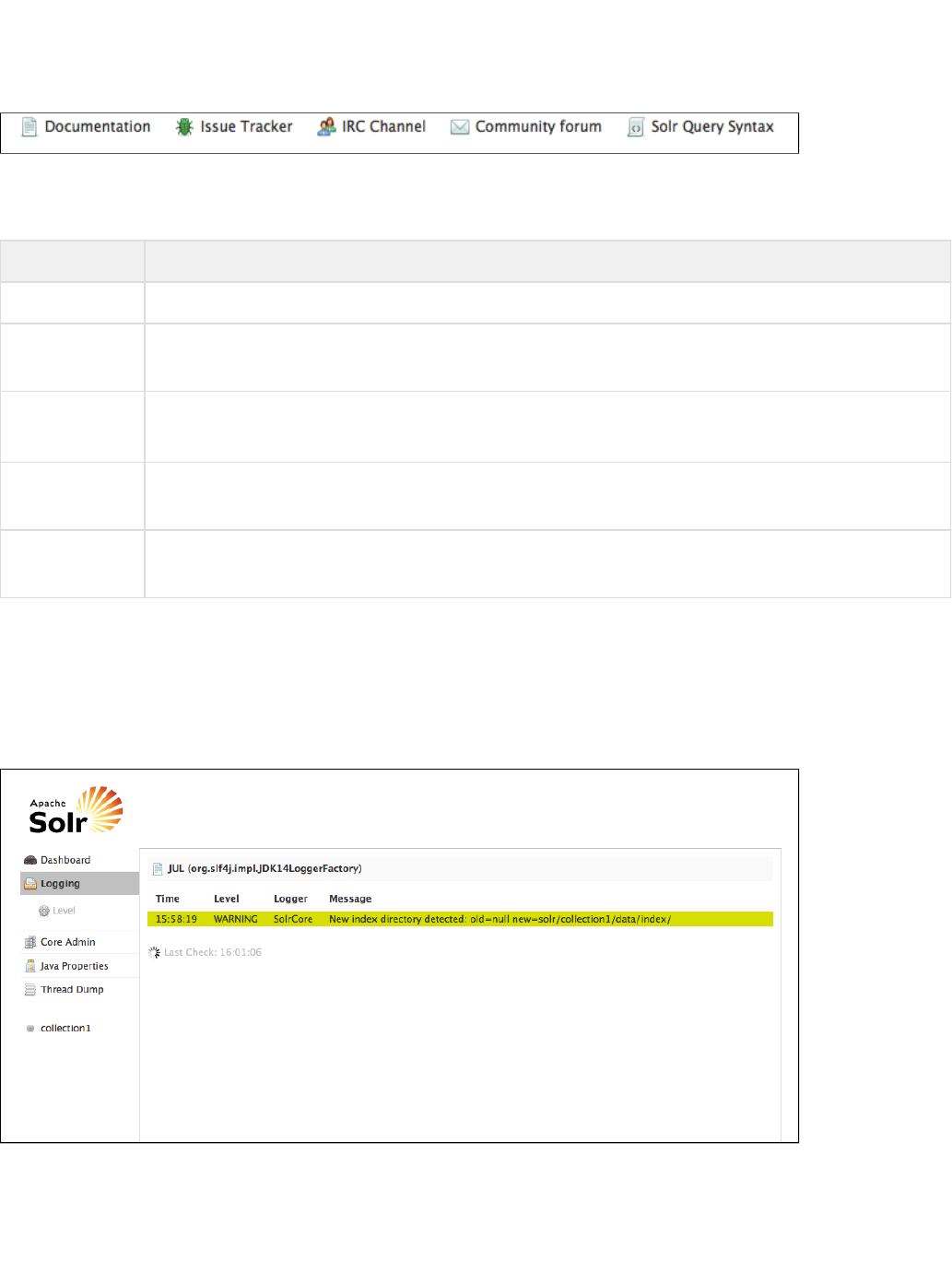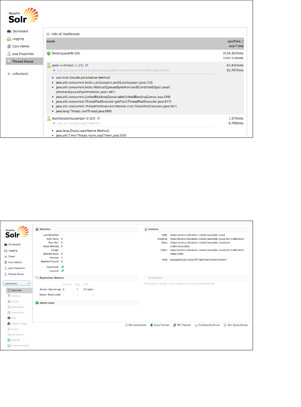 Using the Solr Administration User Interface: This