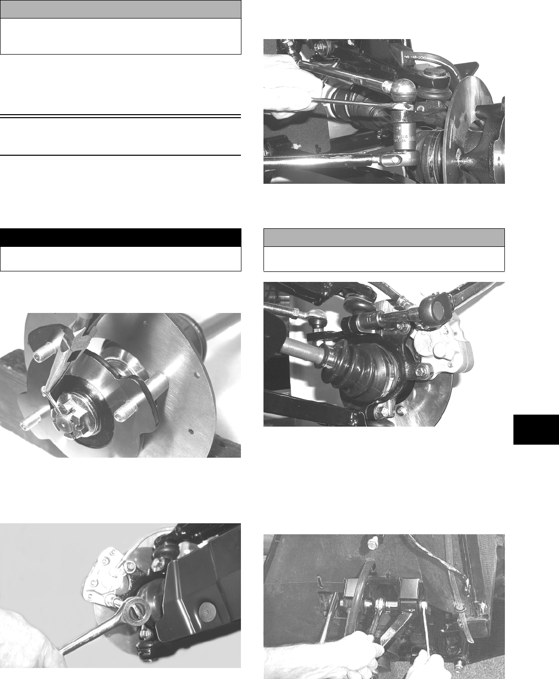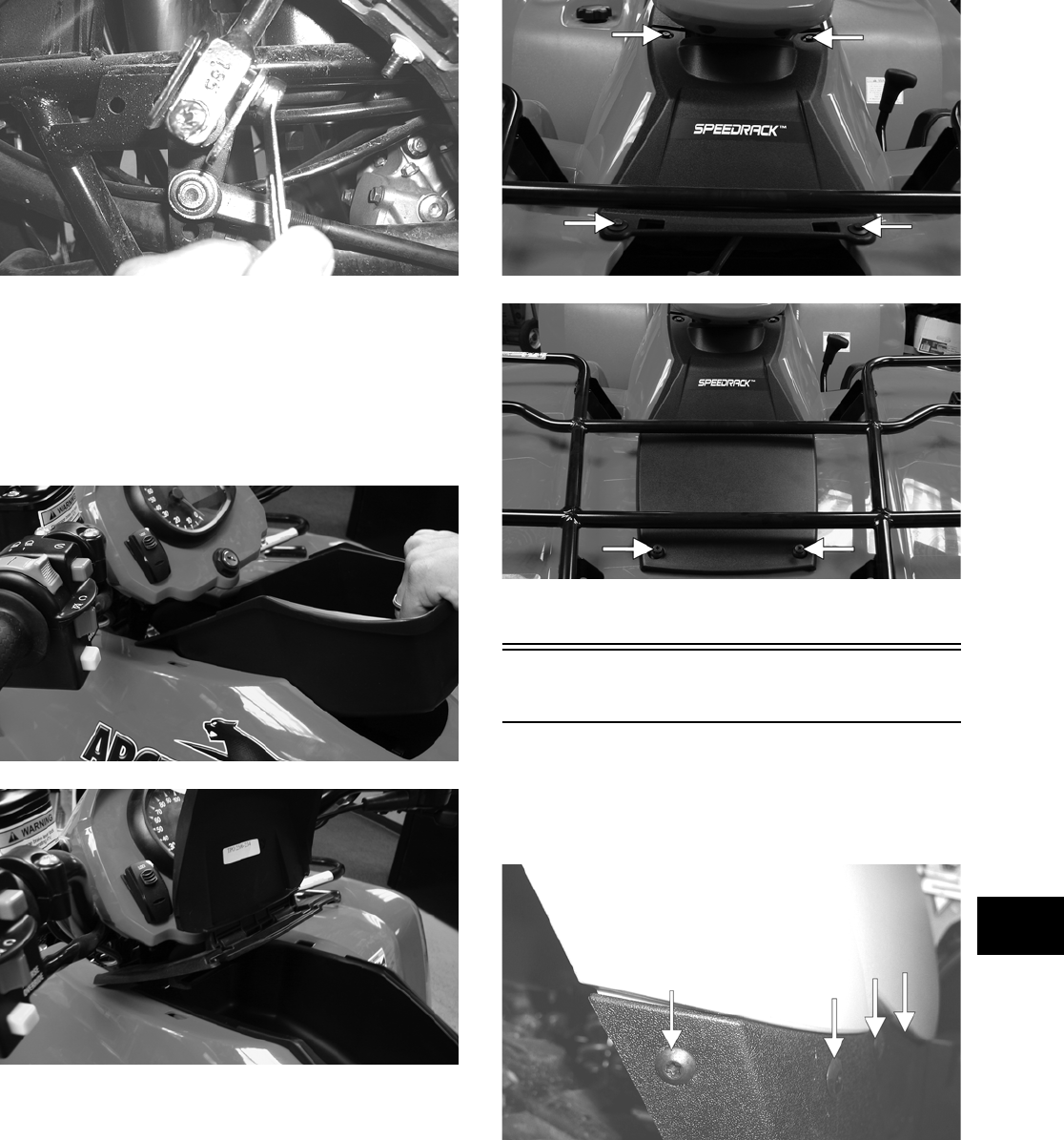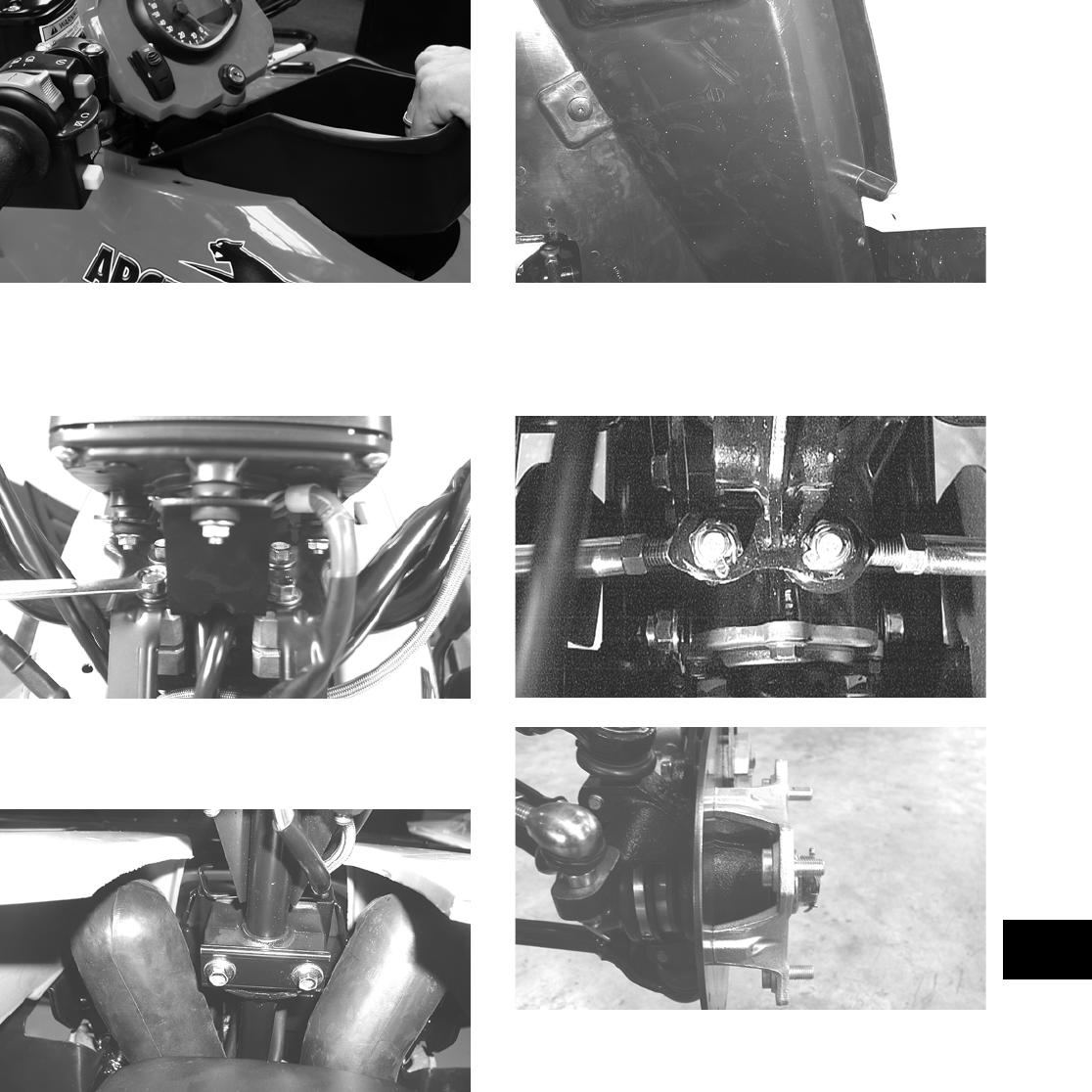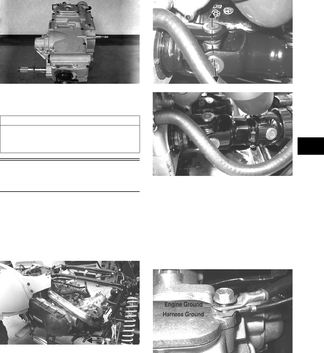 This manual is divided into sections. Each section covers a specific ATV component or system and, in addition to