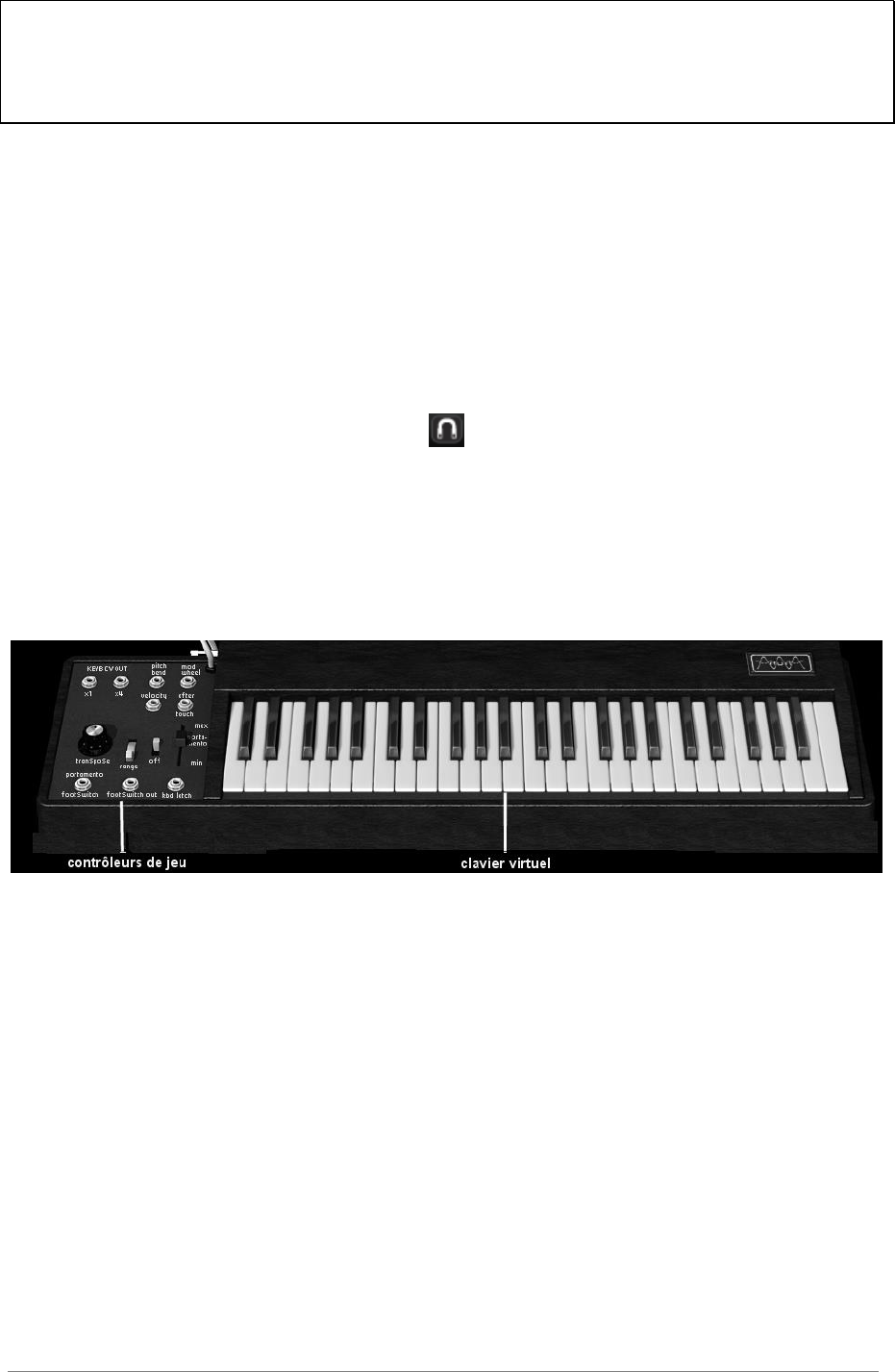 maintenant faire sonner l’ARP2600 V en jouant avec la souris sur le clavier virtuel.