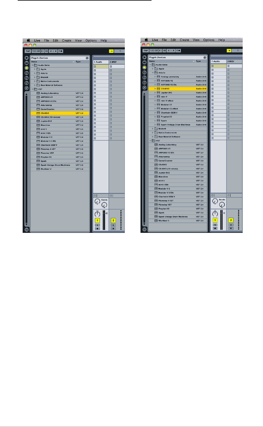 7.10 Utilisation dans Ableton Live (AU et VST)