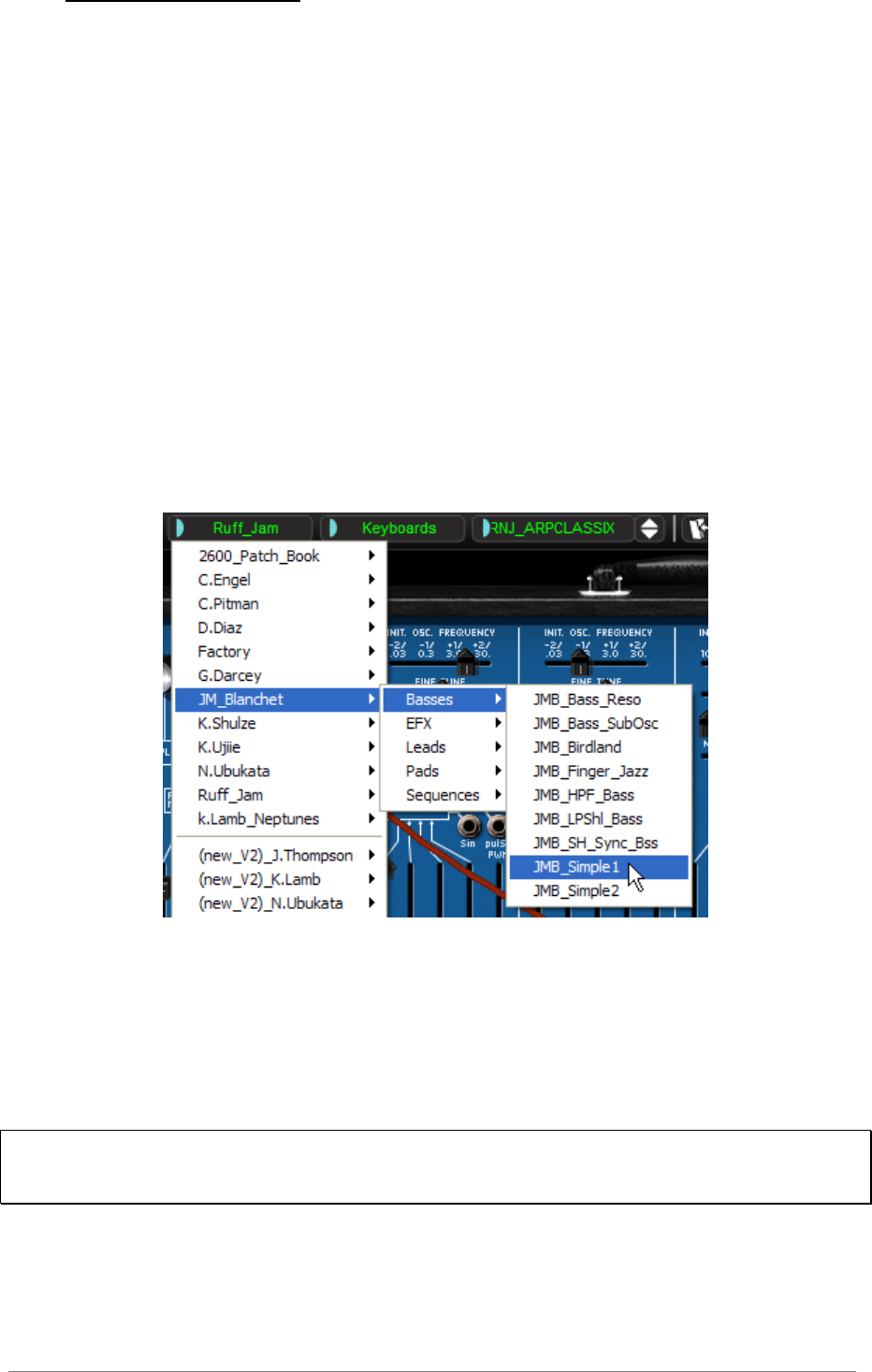 l’ARP2600 V chargera le preset « P1 » plus les modifications apportées. Le « Librarian