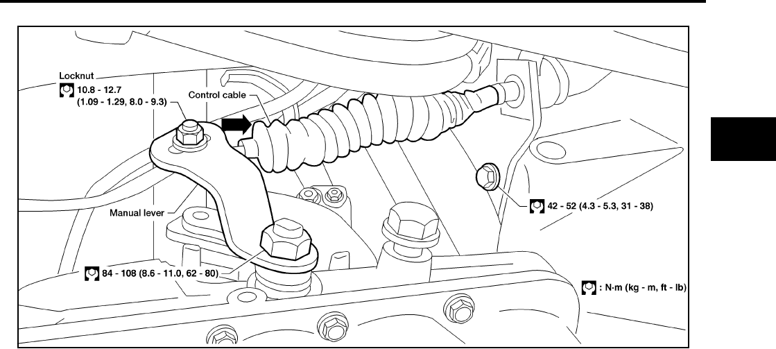 Lock nut tightening torque 4.4 - 5.9 N·m (0.45 - 0.60 kg-m, 39.1 - 52.1
