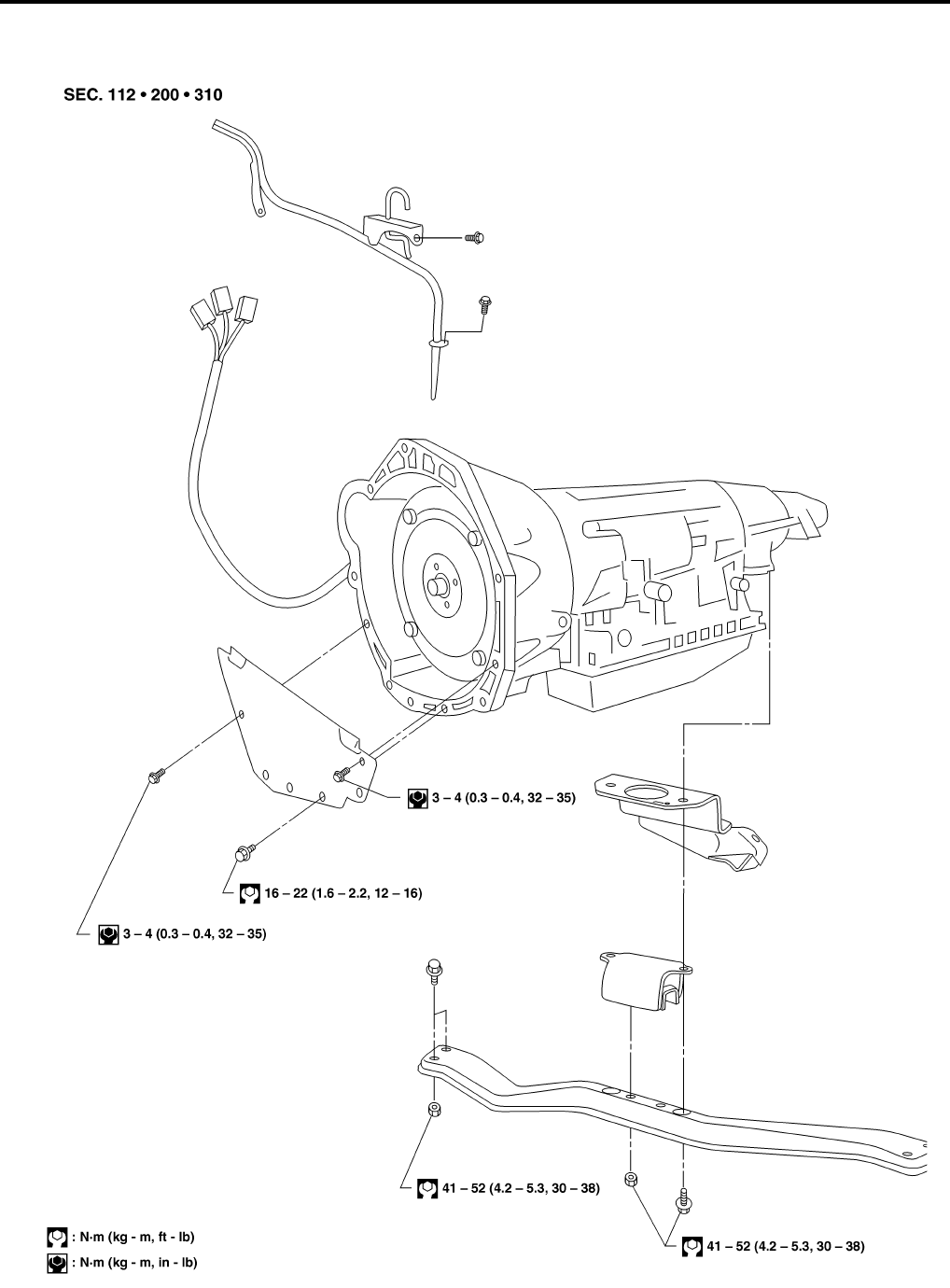 Anchor end bolt tightening torque 4 - 6 N·m (0.4 - 0.6 kg-m, 35 - 52 in-lb)