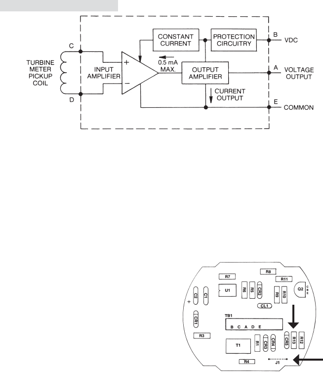 through R12; thus, a square wave output proportional to the turbine meter fre-