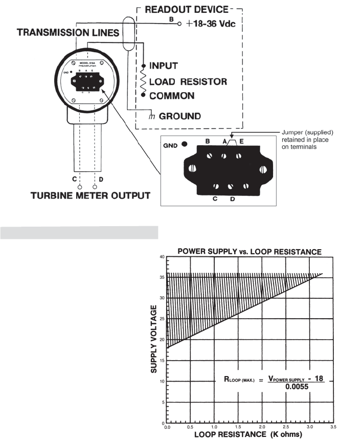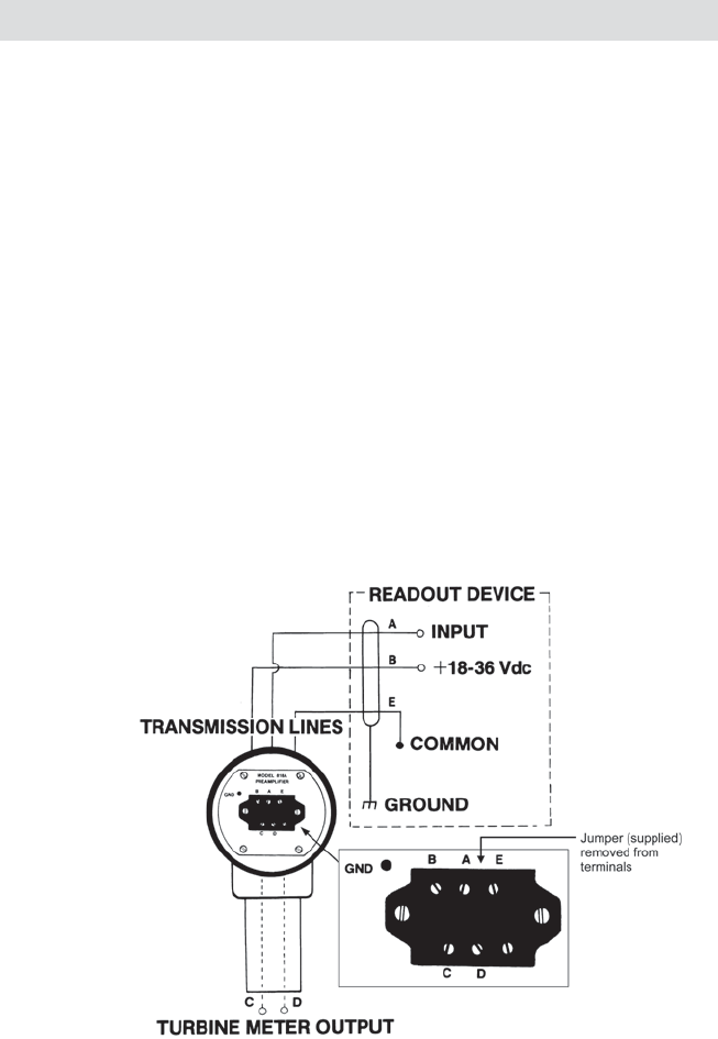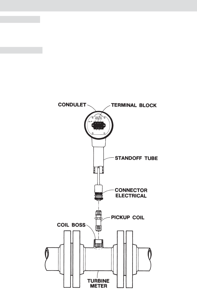is usually mounted directly on a turbine meter pickup coil boss with electrical con-