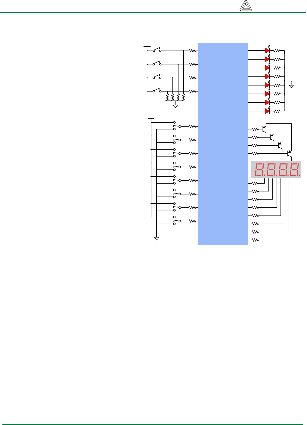 segment display will show counting digits, the switches will turn on individual LEDs, the buttons will