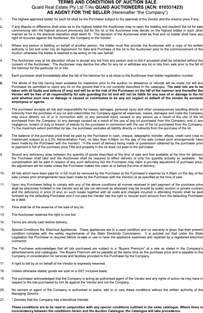 QUAID AUCTIONEERS FOR IN HOUSE OR ON SITE AUCTIONS