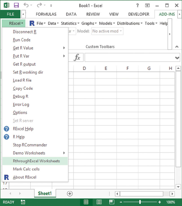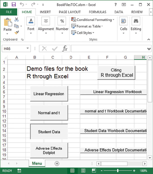 RExcel integration of Rwith Excel (Appendix D), and the shiny package for inte-