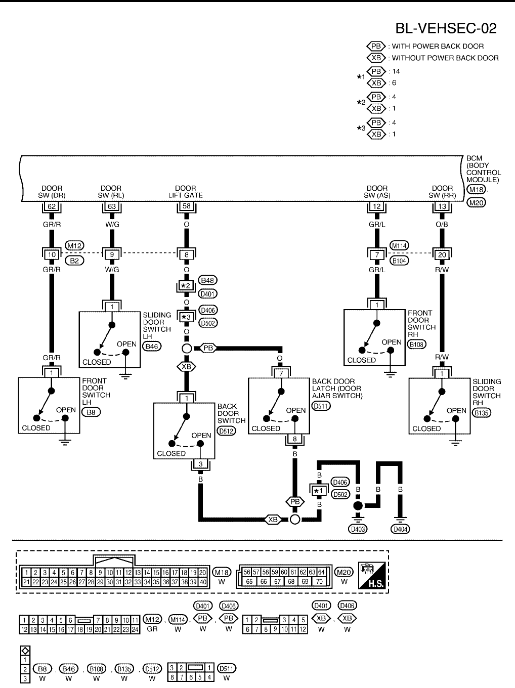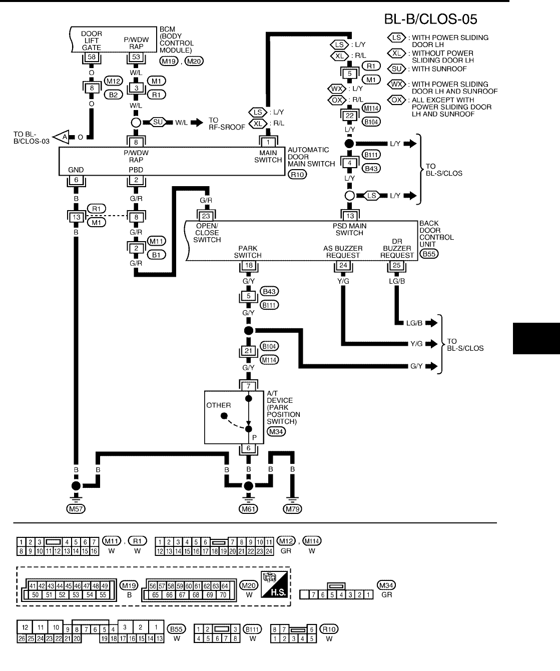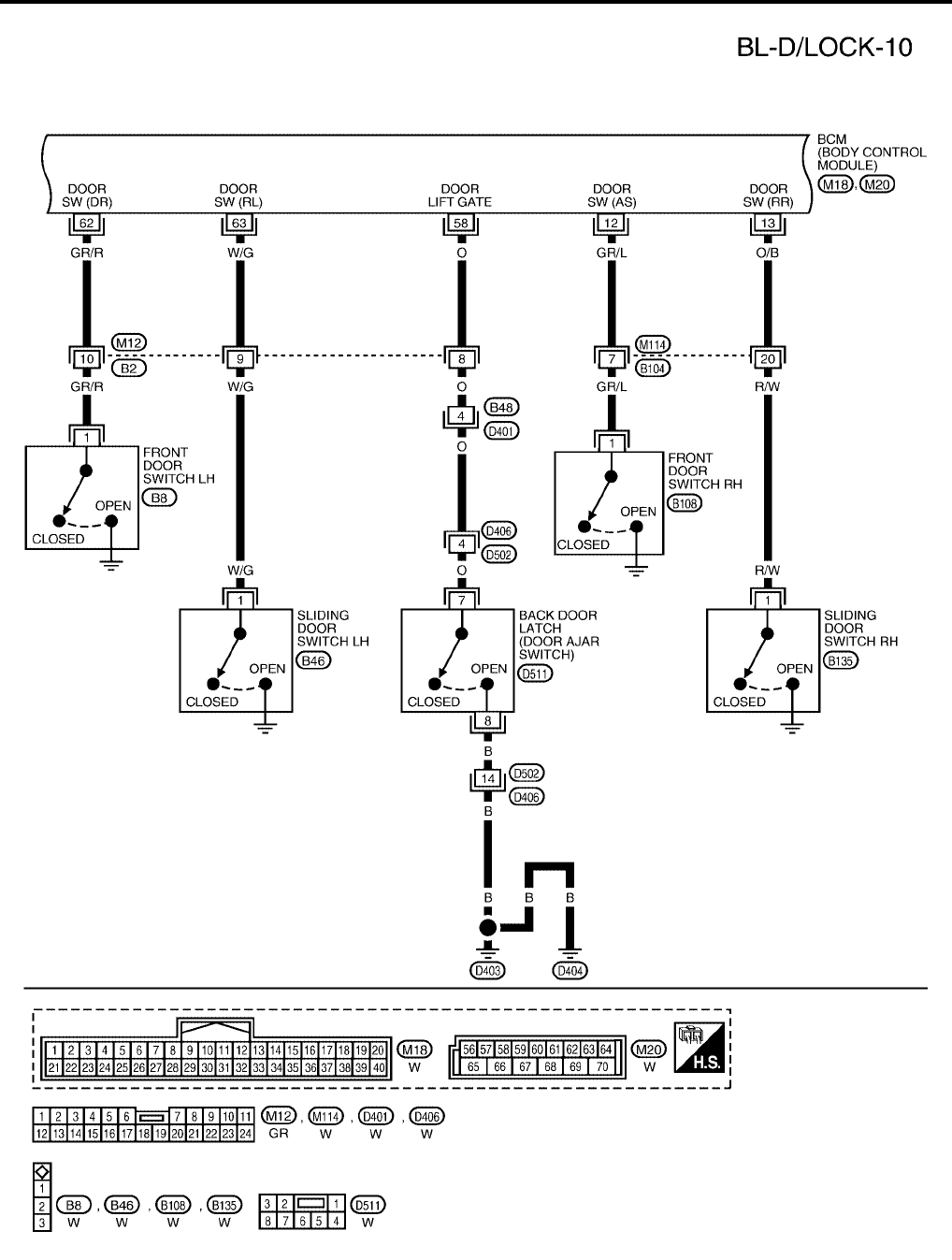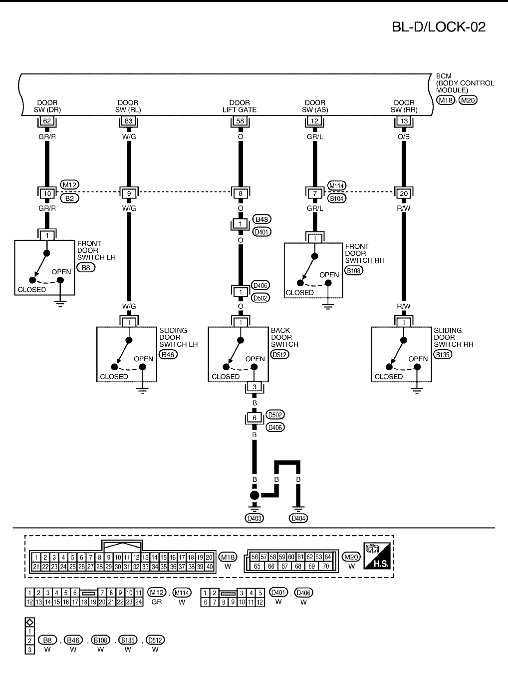 - Terminals and Reference Value for Sliding Door Control Unit LH