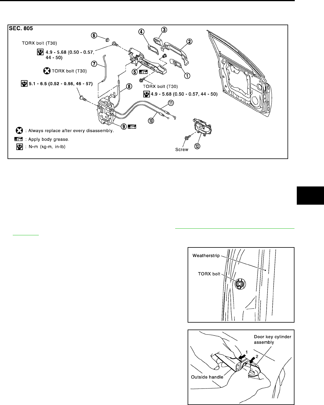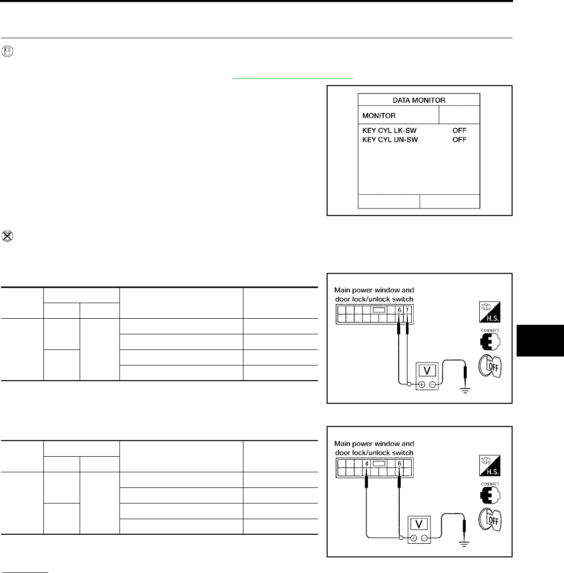 - Front Door Lock Assembly LH (Key Cylinder Switch) Check