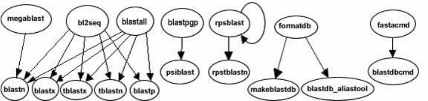 e functionality of the BLAST+ applications is organized by search type. As an example,