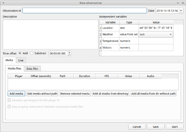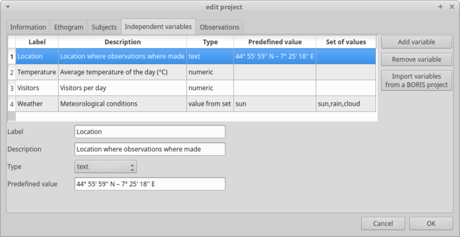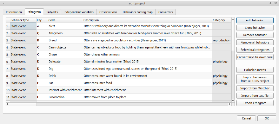 - Create a new project with BORIS