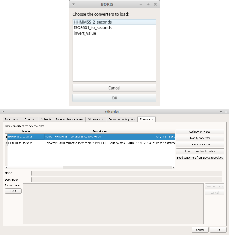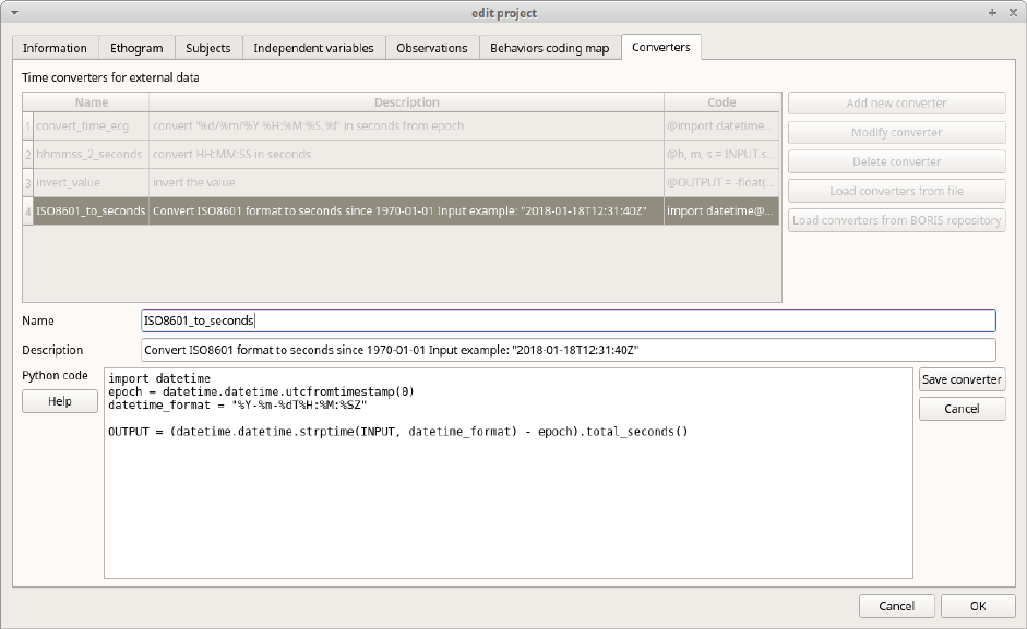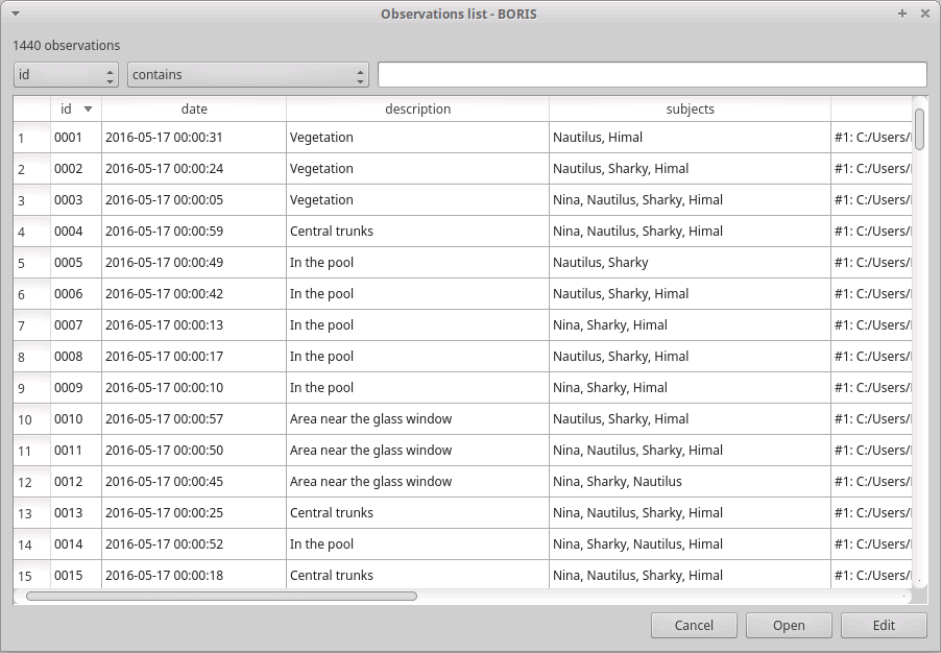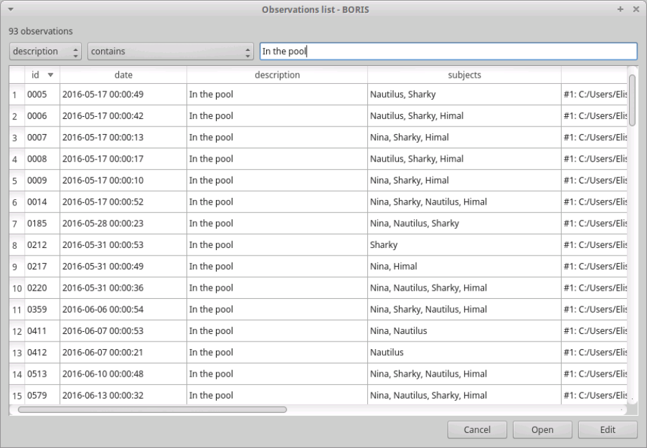 - Open an existing project with BORIS
