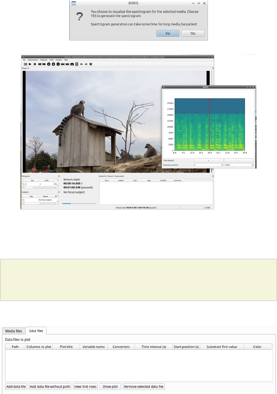 spectrogram visualization. If you do not specify a path, BORIS will use the default temporary directory