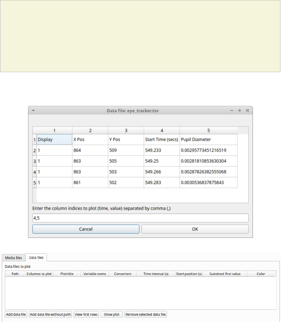 Ethogram widget in the main window 34
