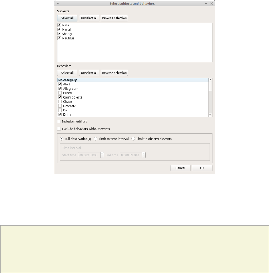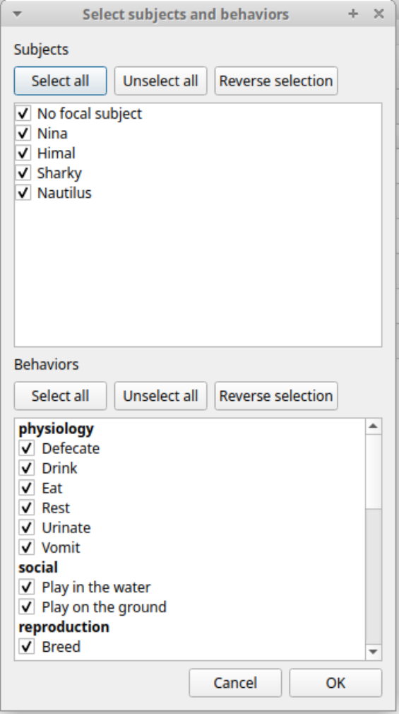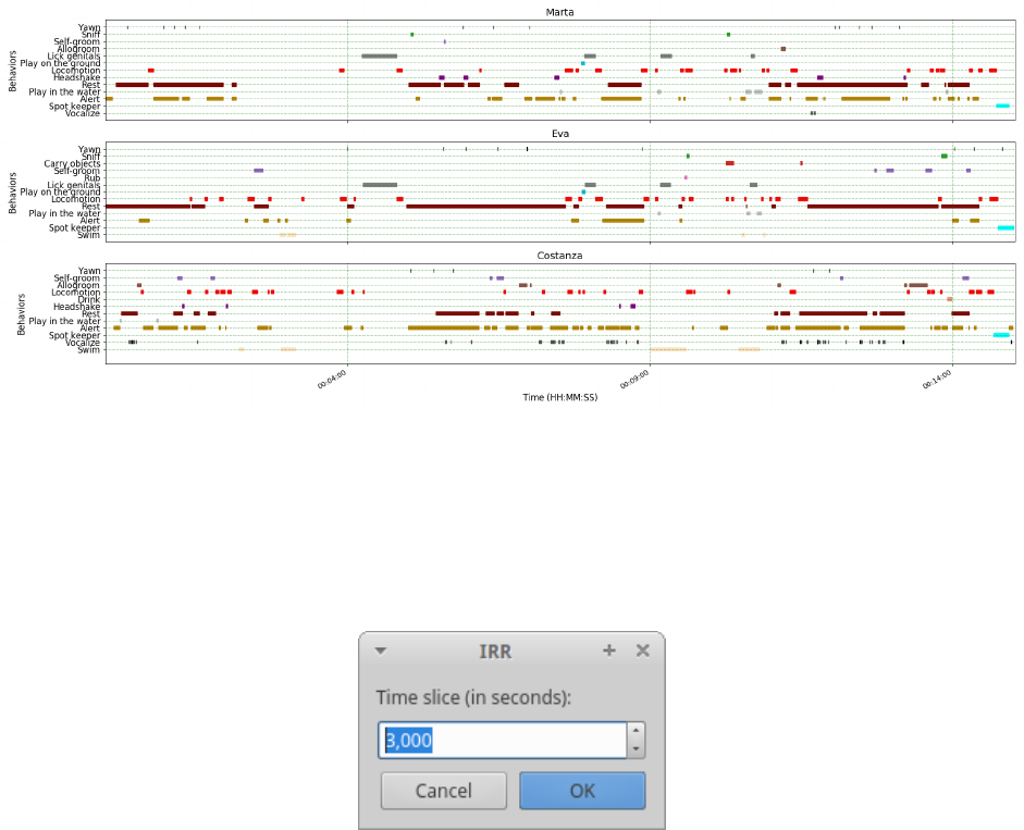 the first behavior in your ethogram, the second color to the second behavior and so on. Various color