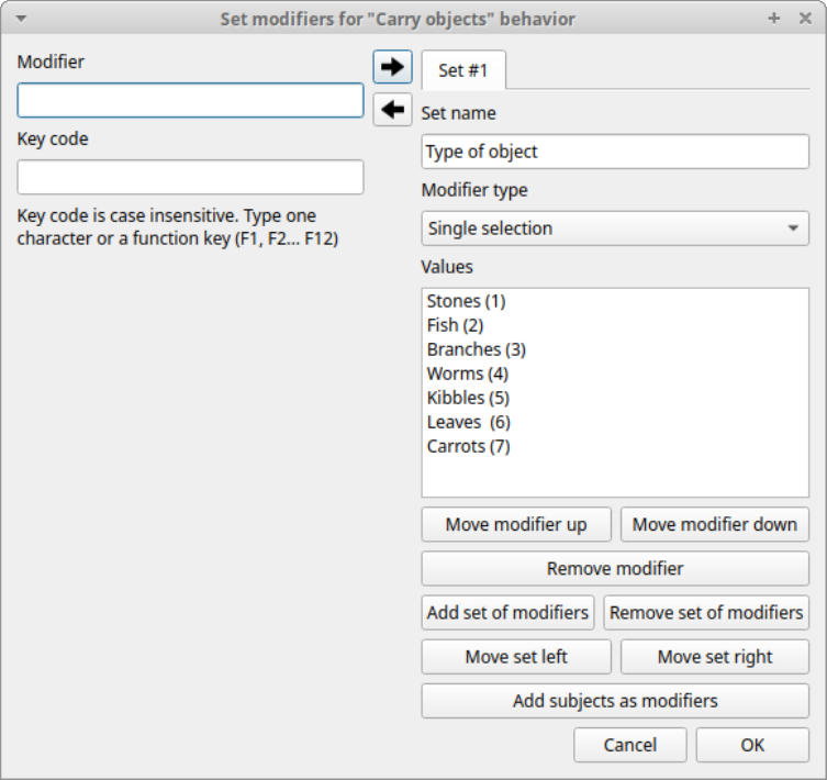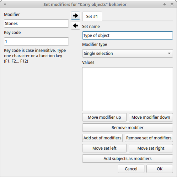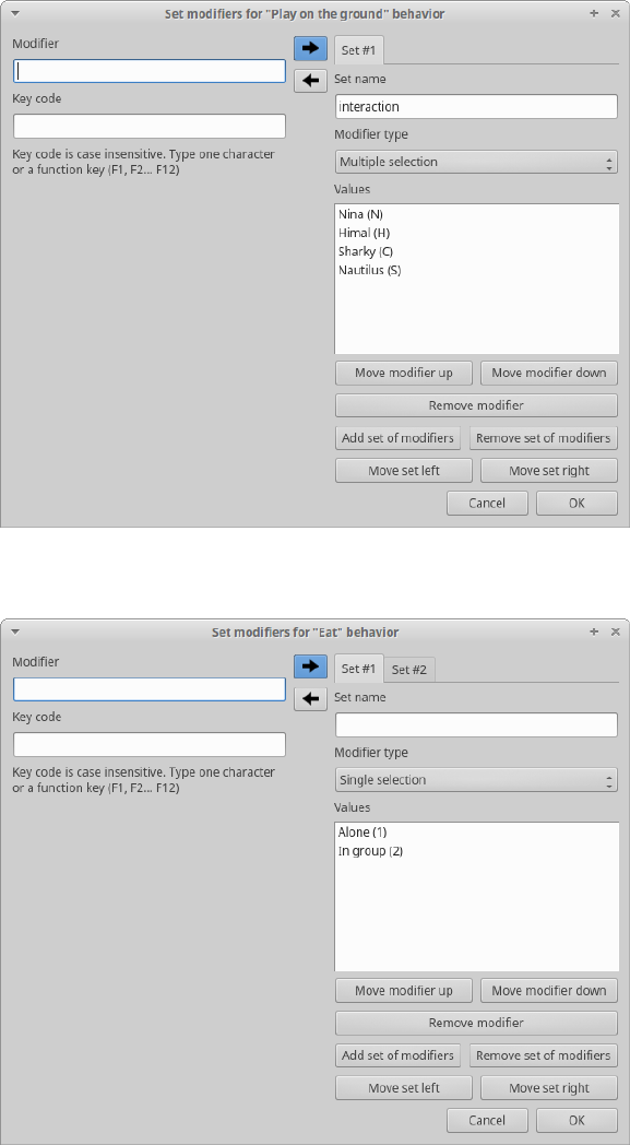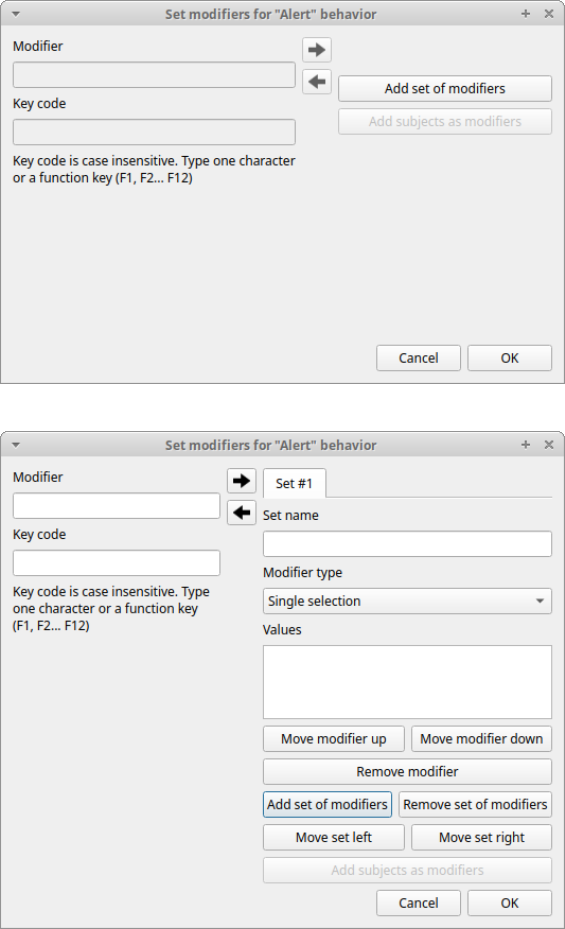 Valid keys for triggering behavior 83
