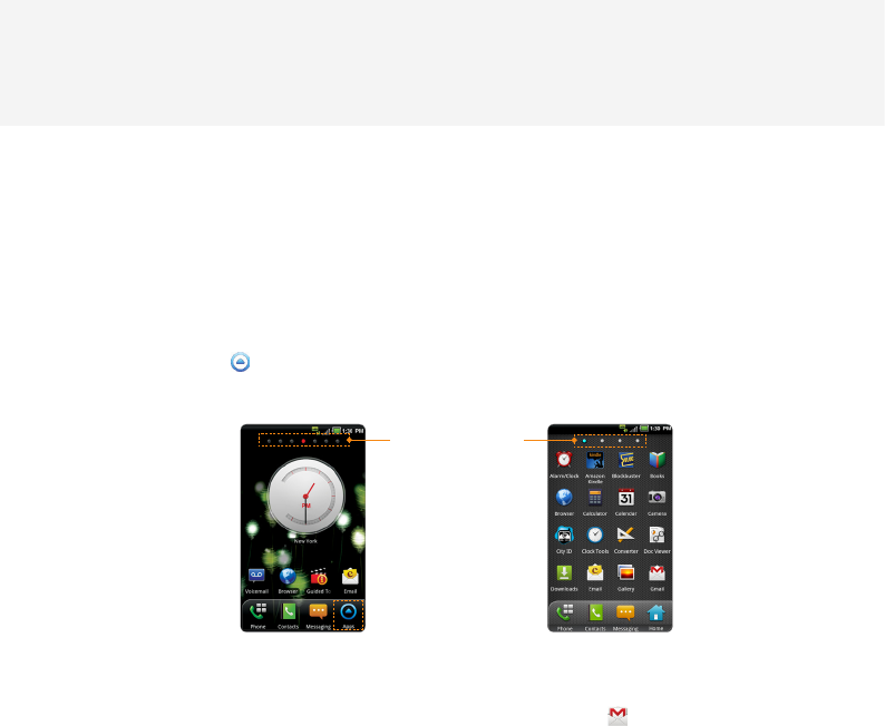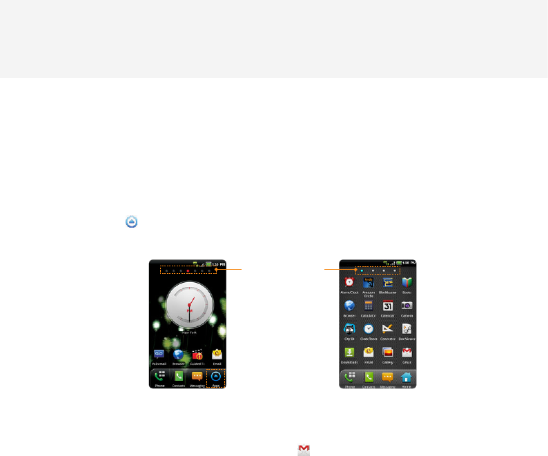 xWords in bold fonts refer to the relevant action on the screen. For example, “Touch Gmail” means