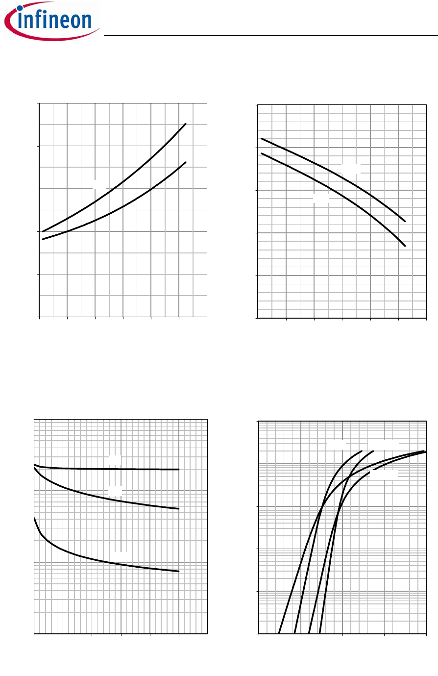 RDS(on)=f(Tj); ID=50 A; VGS=10 V VGS(th)=f(Tj); VGS=VDS