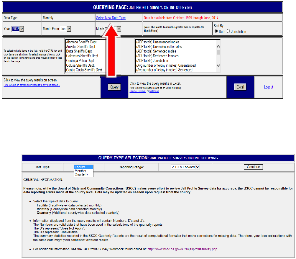 QUERY TYPE SECTION: Select data type (either facility, monthly, or quarterly) in the