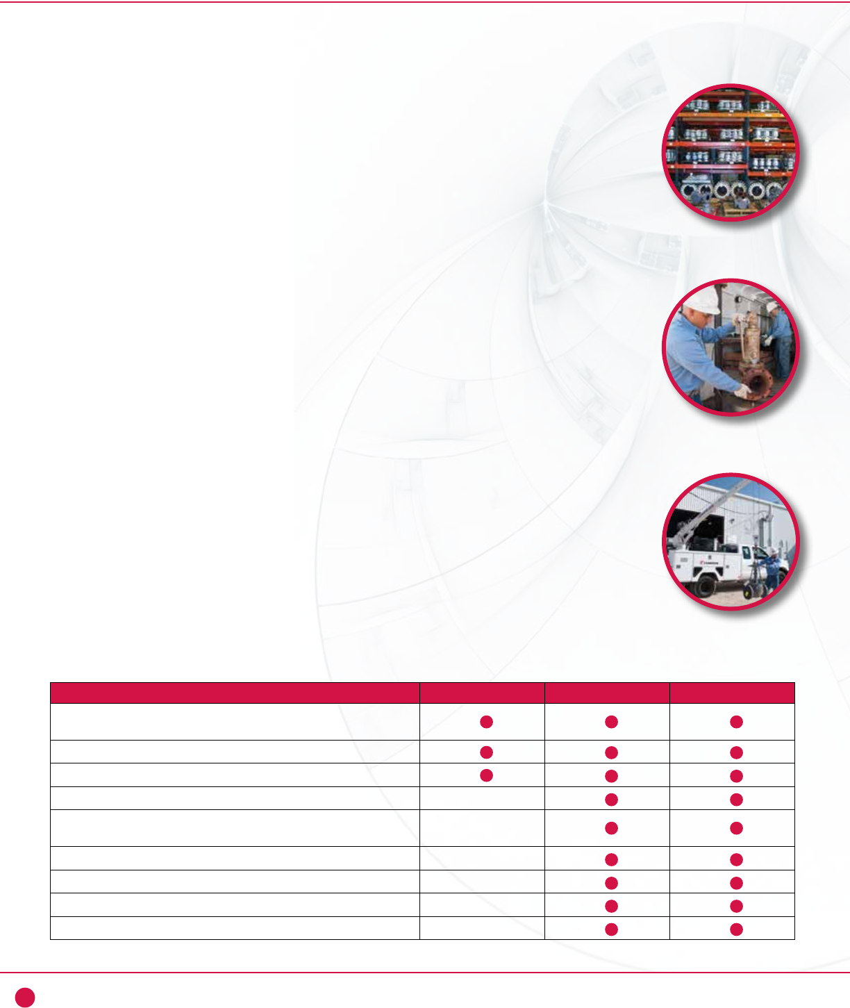 • Extensive inventory of spare valves and parts